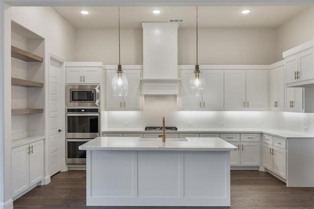 Stunning home on a cul de sac in the highly desirable Trailwood Subdivision! Open floor plan with hardwood flooring, exposed wood beams, and abundant natural light in the living and dining area. The gorgeous kitchen features a quartz countertop, decorative light fixtures, a double oven, and stainless appliances. The owner's suite boasts separate vanities, a garden tub, a separate shower, and a spacious walk-in closet with built-ins. Additional suite on the first floor. The second floor offers a flexible room for game or movie nights, adjacent to generously sized guest bedrooms. Four bedrooms, five baths, two living areas, and office space. Enjoy the sizable backyard with a covered patio and plenty of room to play. Community amenities include walking trails, playgrounds, pools, and a clubhouse. Coveted Argyle ISD and only 10 minutes from Roanoke Downtown. Make this home yours today!