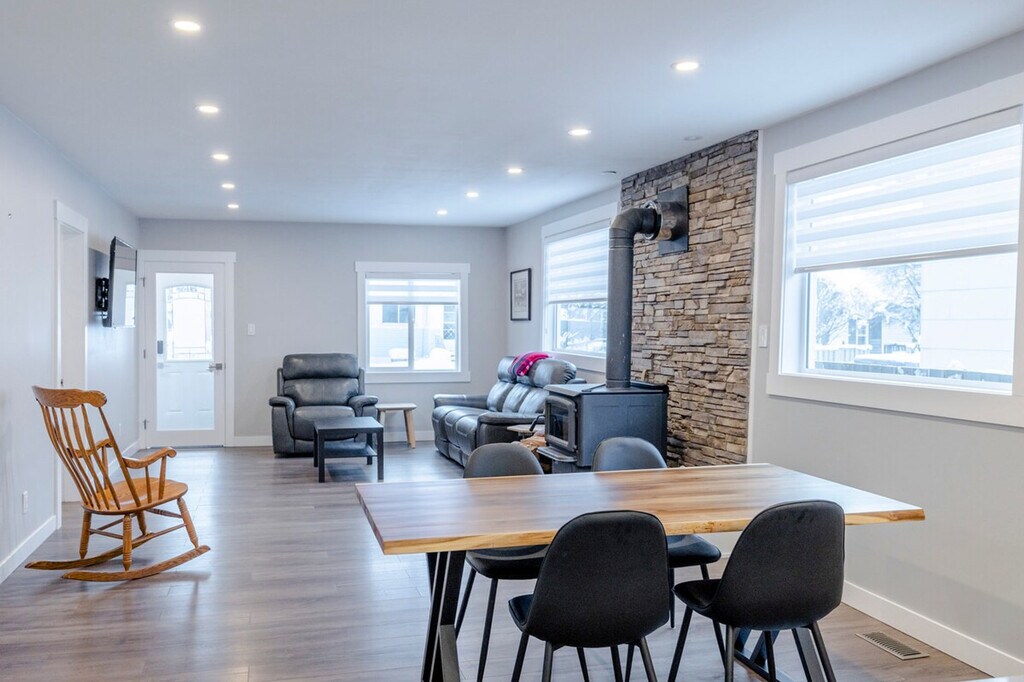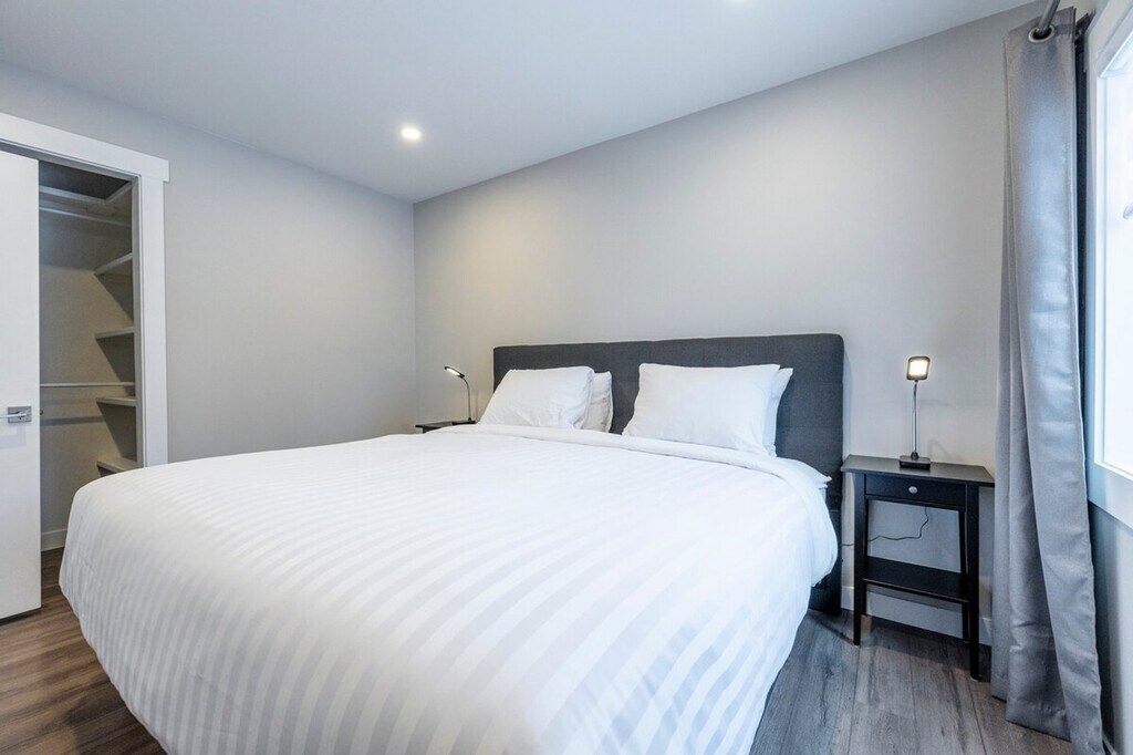 The advertised rate of C$10,371/month is the lowest available price, based on a 1 month(s) stay with a move-in date of April 5, 2026. Rates vary depending on the duration of stay, season, and other parameters. For exact pricing and additional pricing components, please visit our website and enter your desired move-in and move-out dates. The rate is applicable when billed upfront; it can be higher if billed in multiple payments. Feel at home in this newly renovated downtown home, centrally located for all that Fernie has to offer. With modern fixtures throughout and delightful decor, this home offers an open-plan living area, a gorgeous kitchen, and two separate bedrooms. The open-plan living area is wonderfully light and spacious, featuring wooden floors, large windows, a dining area with a wooden table and chairs, and a lounge area with a leather sofa, chair, and real wood fireplace. The fully equipped kitchen includes salt, pepper, cooking oil, and fresh coffee beans, along with a coffee grinder. A back room accessible from the kitchen provides storage space for bikes. The renovated bathroom features a deep tub with shower, WC, vanity unit, locally made hand soap, bodywash/shampoo, hotel-quality towels, and a washer and dryer. An optional Guest Damage Protection policy covers accidental damages up to CA$1000, protecting you from being charged for unforeseen incidents that might occur during your stay. This policy covers lost keys, keycards, fobs, remotes, or parking passes, broken cups, plates, or other kitchenware, accidental stains or tears in furniture, carpets, and bed linens, and accidental damage to walls, mirrors, or other fixtures. You are within walking distance of all the boutiques and restaurants in downtown, and the ski hill is only a minute's drive away. Like most quaint BC towns and cities, the main train line runs through Fernie, so expect train noise at this location. If you have any kind of allergy please reach out prior to booking. [SI]