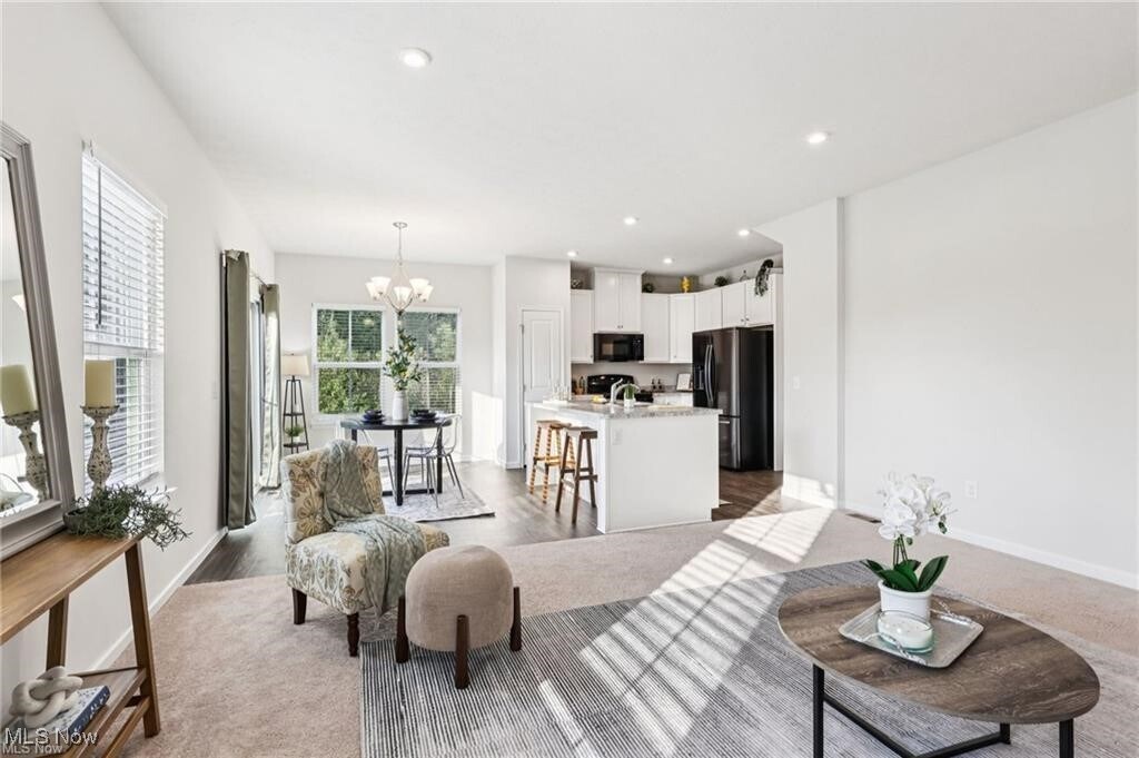 Adorable End-Unit Townhome in the heart of Medina – Just Minutes from Medina Square! Welcome to this beautifully maintained 3-bedroom,2.5-bath townhome offering an open and inviting floor plan filled with natural light. Nestled on a private lot with wooded views and backing to protected wetlands,this home combines comfort,convenience,and style. Step inside to find a spacious kitchen with newer appliances,a large island,and plenty of cabinetry—perfect for everyday living and entertaining. The main level features upgraded lighting,tall ceilings,a half bath,and wiring for mounted TVs in the living room. Upstairs,the owner’s suite is a true retreat with two walk-in closets,a spa-like bath with a double vanity and a luxurious walk-in shower with dual shower heads and bench seating. Two additional bedrooms,a full bath,and a convenient second-floor laundry room with shelving and storage complete the upper level. The finished basement provides even more living space,abundant storage,and additional wiring for a mounted TV. Outside,enjoy a private backyard with green space and serene wooded views,perfect for relaxing or entertaining. Freshly painted throughout,this end-unit gem is move-in ready and just minutes from Medina Square’s shopping,dining,and community events. Don’t miss your chance to call this charming Medina townhome your own!