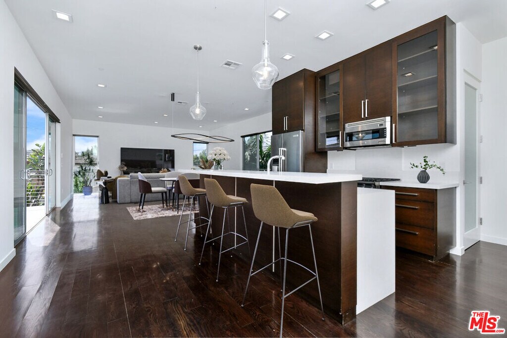 Stunning contemporary lease in the heart of West Los Angeles, offering approximately 2,100 square feet of thoughtfully designed living space with 3 bedrooms and 2.5 bathrooms. This light-filled residence features an open-concept floor plan with expansive living areas, wide-plank floors, and oversized windows that flood the home with natural light. The chef's kitchen is beautifully appointed with sleek white countertops, custom cabinetry, stainless steel appliances, and a large center island, perfect for both everyday living and entertaining. The main living level offers seamless indoor-outdoor flow with two private balconies, ideal for relaxing or hosting. The spacious primary suite serves as a peaceful retreat with generous closet space and a spa-like en-suite bathroom. Two additional bedrooms are well-sized and each include their own private balcony, offering flexibility for guests, family, or a home office. Additional highlights include secure, off-street parking and modern finishes throughout. Ideally located in West Los Angeles, just minutes from Santa Monica, Brentwood, and Westwood, with convenient access to top dining, shopping, and the beach. A rare opportunity to lease a stylish, modern residence in one of the Westside's most desirable locations MLS# 26673017