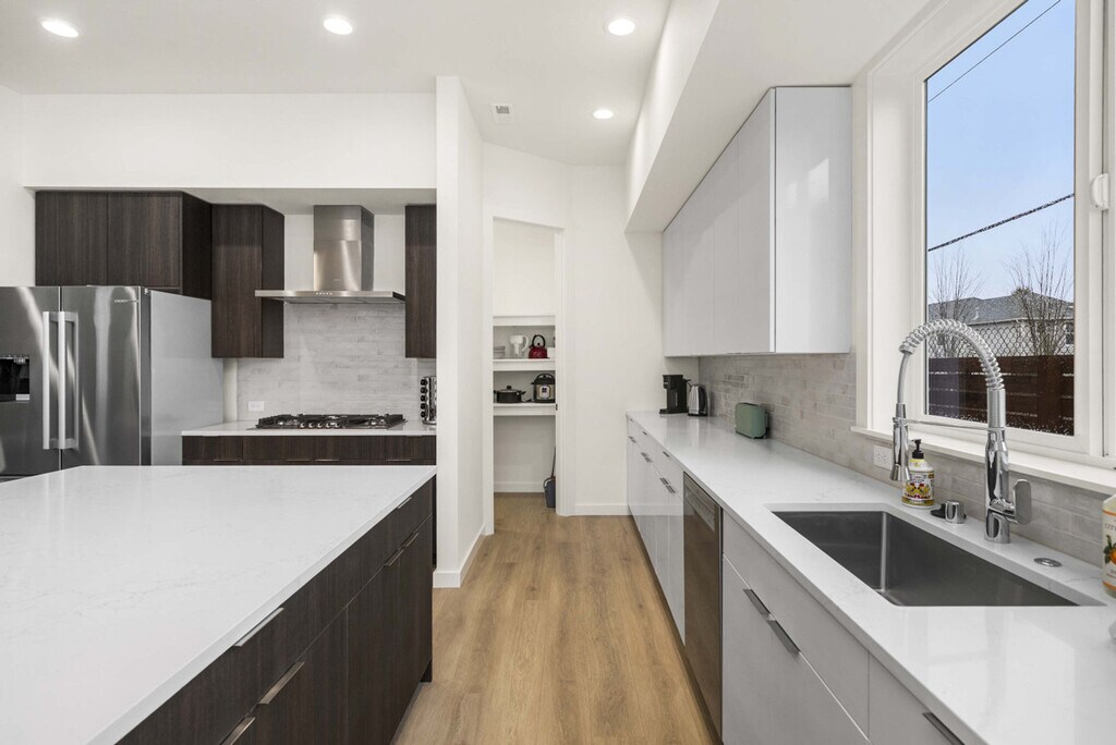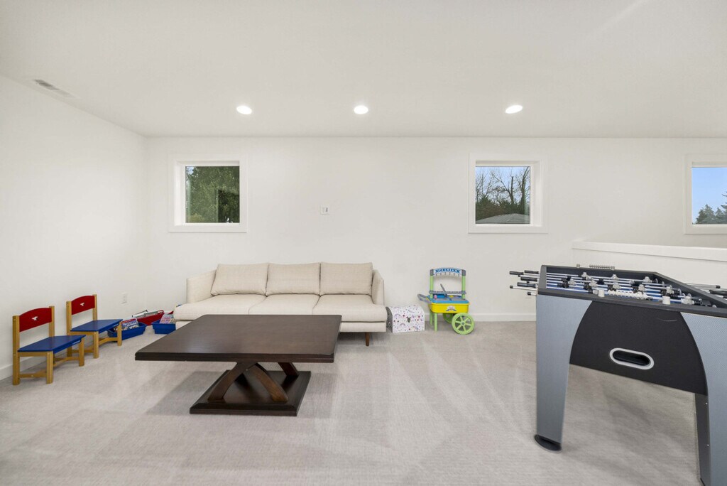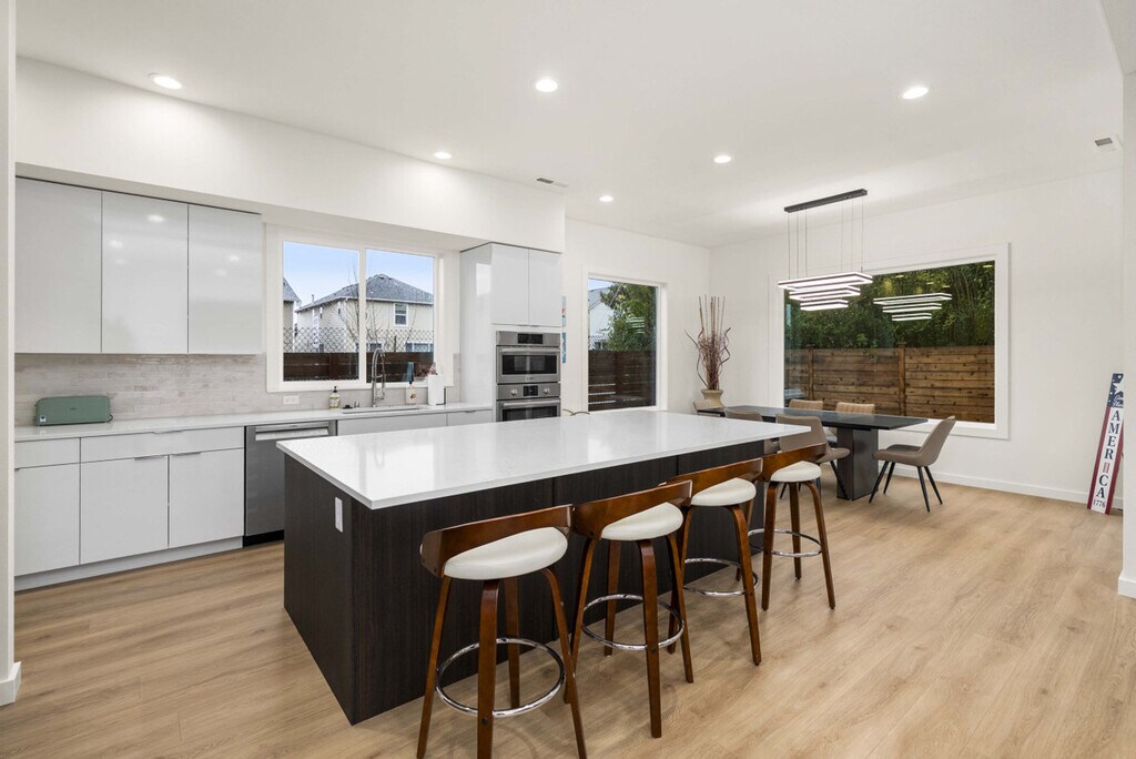 Feel at home in this brand-new 5-bedroom modern home in Kent, designed for families and groups seeking space and comfort. This spacious two-story residence offers 4,000 sq ft of living space. The home features an open-concept main level with a stylish living area with an electric fireplace, and a fully equipped chef’s kitchen with an oversized island and bar seating. Upstairs features a second living area with a foosball table for relaxed downtime. Additional amenities include a dining area with seating for 6, walk-in closets and ample storage, an in-unit washer and dryer, central heating and air conditioning, and a private, fully fenced backyard with a patio. Garage and driveway parking are available. Located on a quiet residential street in Kent, this home offers a peaceful suburban setting with quick access to shopping, dining, parks, and daily essentials. It's approximately a 15-minute drive to Kent Station (shopping & dining) and ShoWare Center, a 13-minute drive to Green River Trail, a 17-minute drive to Kent Valley Ice Centre and Lake Meridian Park, and a 25-minute drive to Sea-Tac International Airport. Major routes, including SR-516, I-5, and I-405 are easily accessible, providing direct connections to Sea-Tac Airport and other nearby cities. No smoking is allowed in the property and its vicinity. No parties, events, or large gatherings are permitted. Includes a workspace/desk in the bedroom. [SI]