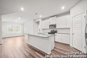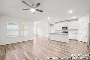 This charming one-story home on San Antonio's far west side, near Lackland Air Force Base, features an open floor plan with 4 bedrooms and 2 full bathrooms. It offers modern finishes, a spacious kitchen, and a private backyard with neighborsbehind you on a green belt. Conveniently located near major highways, shopping, parks, and top-rated Medina District schools. Schedule a showing today!