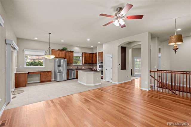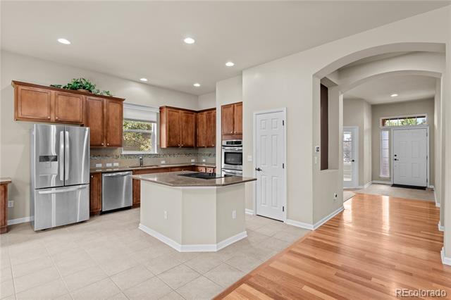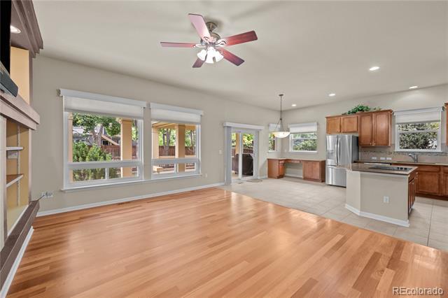 Enjoy the perfect combination of comfort, convenience, and style in this beautiful 4 bedroom, 3 bath home located just south of RidgeGate, between I-25 and Parker Road. With quick access to shopping, dining, the light rail, and local parks, you’ll love how easy it is to get anywhere from here. The open floor plan features a main-floor study, formal dining room, and a bright kitchen with a nook and island that flows into the family room with a cozy fireplace. The spacious primary suite includes a luxurious 5-piece bath, while two additional large bedrooms and a full bath are also on the main floor—ideal for main-level living. The finished basement offers a huge entertaining space complete with a large wet bar, game area, and TV lounge with a fireplace. You’ll also find a fourth bedroom and a full bath downstairs; perfect for guests or extended family. Enjoy Colorado’s outdoors in the mature, easy-to-maintain yard with a charming covered deck. Additional features include a finished 3 car garage, inviting front porch, and a location less than half a block from the park, with Double Angels Ball Field and the reservoir within walking distance. This home offers both space and convenience in a lovely neighborhood. Schedule your showing today! Single Family Residence MLS# 1566638