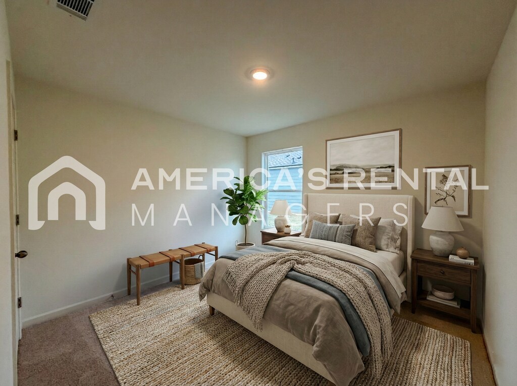 This inviting 4-bedroom, 2-bathroom home features a spacious, single-level layout designed for modern living. The open-concept floor plan seamlessly connects the kitchen, breakfast area, and great room, creating an ideal environment for gathering and entertaining. A private primary suite serves as a relaxing retreat, complete with a double vanity, shower, and a generous walk-in closet. The home also offers a shaded covered patio for outdoor enjoyment, along with practical conveniences such as a dedicated laundry room, pantry, and an attached two-car garage. Note: Some photos featuring furniture have been virtually staged to showcase the home's potential. Lease: 13 months. Advertised rate reflects base rent only. Application Process: $60 per adult (19+), due within 24 hours of deposit payment. Screening includes credit, criminal & eviction background, housing history, and employment/income verification. Holding Deposit: $500 temporarily reserves the property during application review. Refundable if application denied. Refundable if prospect cancels within 24 hours; forfeited thereafter. Credited toward security deposit at move-in. Applicants must take possession within 10 days of deposit placement or availability date. Processing Fee: $249 due at lease signing. Resident Benefits Package (RBP): $59.95/month includes renter’s insurance, positive credit reporting, ID theft protection, HVAC filter delivery, on-demand pest control, and resident rewards program. Utilities: Landlord bills monthly for water/sewer/gas/trash + $10 monthly admin fee. Resident sets up electricity only. Pet Policy: Pets considered on a case by case basis, with breed restrictions (max 2 without special approval). One time $500 non-refundable fee + monthly pet rent ($25/mo 0-40 lbs; $50/mo 40+ lbs; $50 for 3+ pets with approval). $200 refundable deposit for pets under 1 year. ESA/Service animals require additional documentation. School Zone: Residents verify independently. Contact: America’s Rental Managers – call or visit for FAQs and application info.