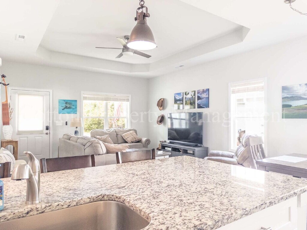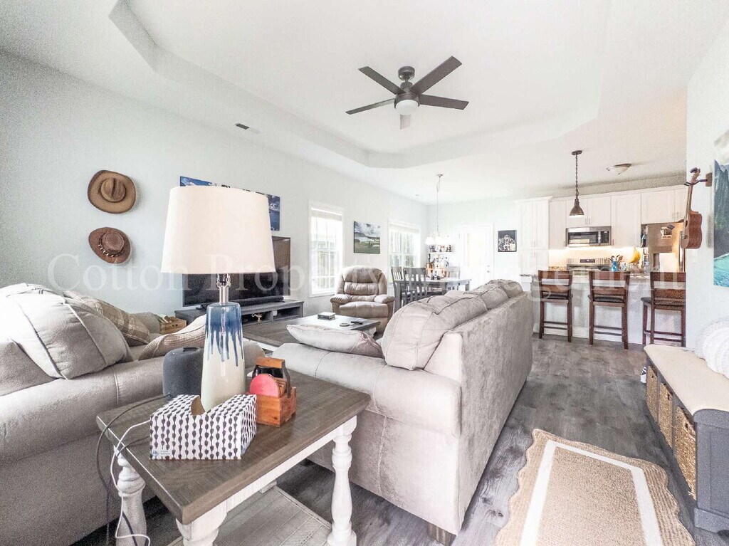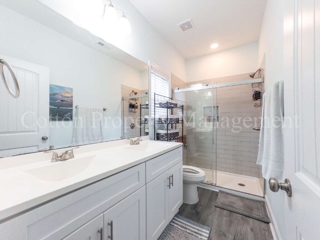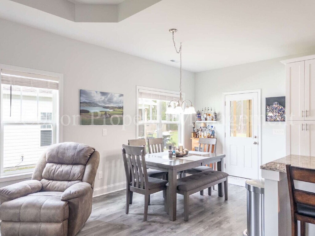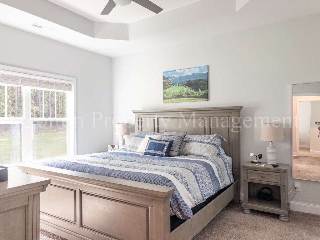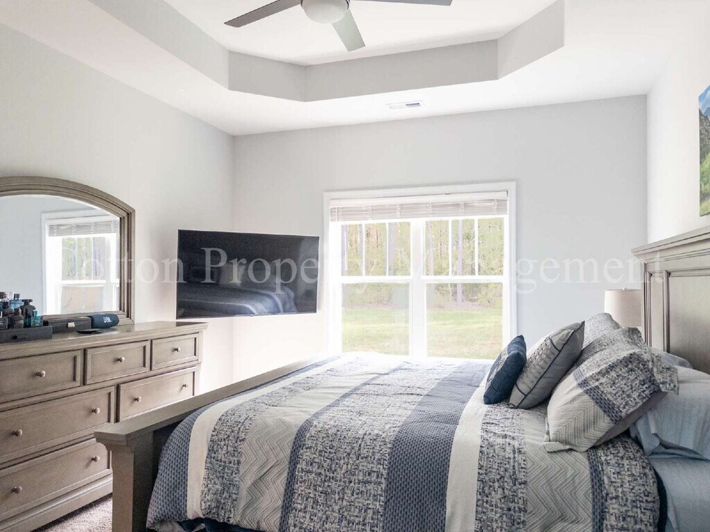Discover your perfect home in this beautifully designed unfurnished 3-bed, 2-bath rental featuring an open living area with stylish LVP flooring and 9-foot ceilings. The kitchen boasts white cabinets, granite counters, and stainless appliances. The open concept provides spacious living, dining, and kitchen areas perfect for entertaining. Versatile bonus room is ideal for a home office, playroom, or cozy den. A private main suite features a large walk-in closet and a private bathroom. Complete with a two-car garage and attic for additional storage. Retreat to outdoor living with a spacious backyard with a covered screened-in patio for year-round relaxation. *Pet friendly - (2) pets limit with applicable pet fees and pet rent. Washer/dryer hookup are available; lawn care is the responsibility of the tenant. No digging in backyard. Professionally Managed by Cotton Property Management, representing the homeowner.Luxury Vinyl Flooring