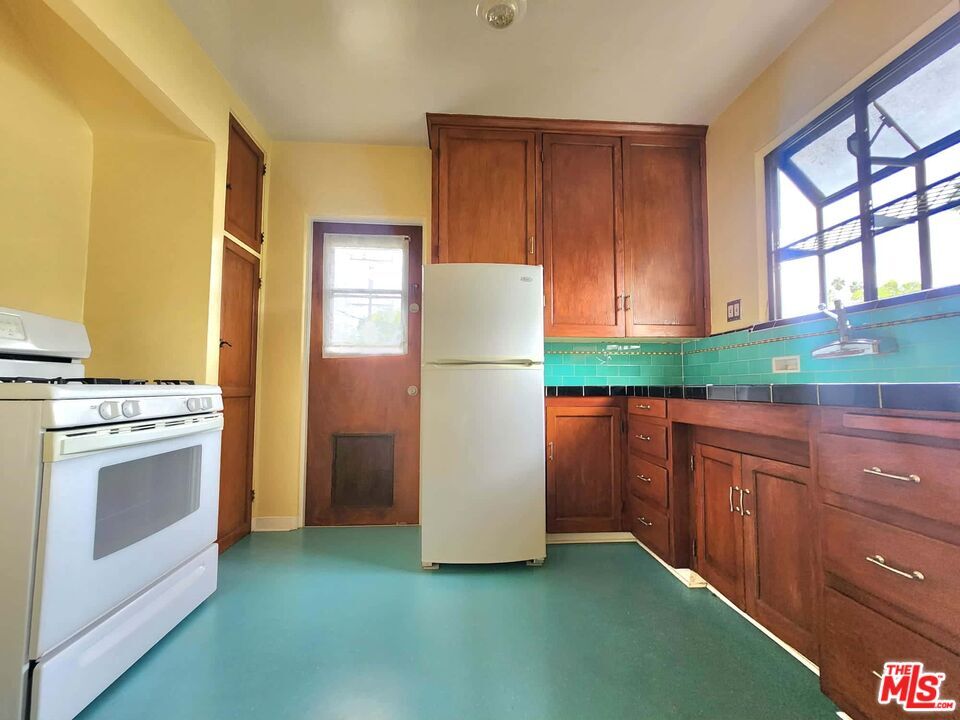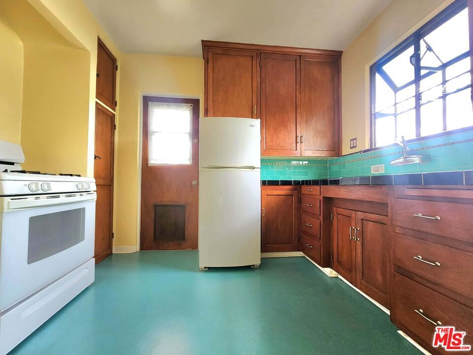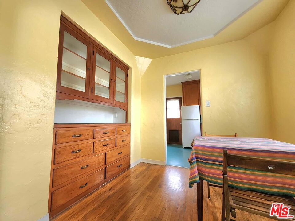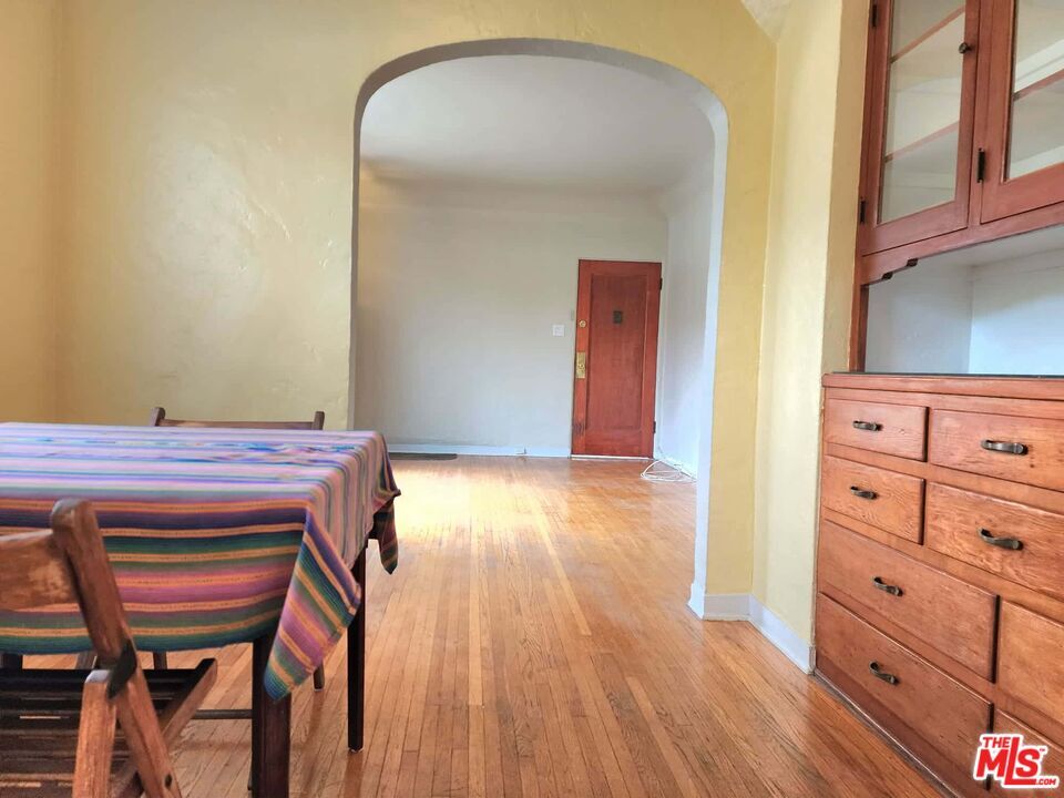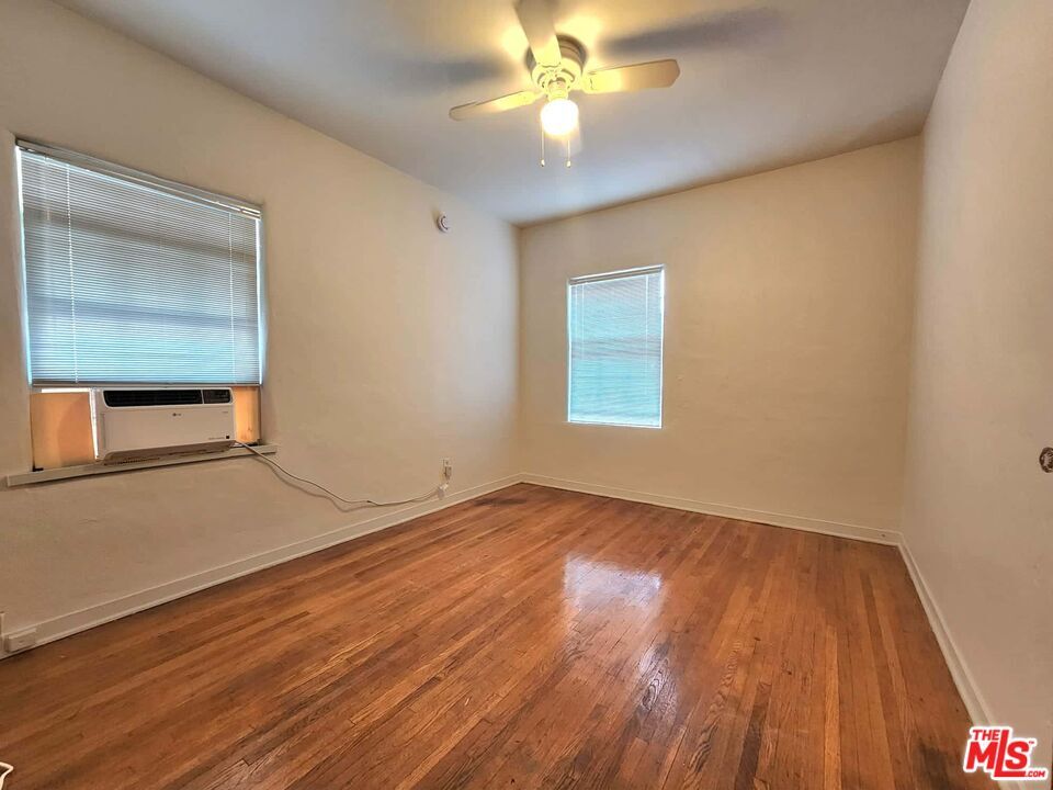 Quiet, private, and filled with natural light. Charming, rare detached 2BR/1 BA upper unit with no shared walls and windows on all four sides. Privately located above the garage. Beautiful unit with vintage character: hardwood floors, double-pane windows, bright living room, formal dining area with attractive built-in china cabinet, and linoleum floor in kitchen. Linen cupboard and drawers in the hallway. Bathroom with separate shower stall, new tile flooring and newly glazed bathtub. Gas wall heater, ceiling fan and two AC units. Private washer and dryer in garage (for use by this unit only). Prime West Hollywood location near Fairfax & Santa Monica Blvd, walking distance to Whole Foods, cafes, restaurants, gyms, Plummer Park, and transit. A peaceful standalone residence in the center of it all. Shown by appointment only. No pets, No smoking; credit score over 675. MLS# 25619407