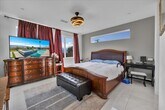 NEW construction home for lease. Long term preffered but will consider mid term. Furnished. Solar powered Mid-Century Modern Architecture built home with expansive mountain views. Close to revitalized Pierson Blvd Corridor amenities. Thoughtfully designed for contemporary living featuring an open concept design with four spacious bedrooms and three bathrooms. A second Master located in the front has its own full bathroom. Built with 2 x 6 exterior walls,9 ft ceilings,and an 11 ft ceiling in the Great Room. Large marble styled ceramic tile flooring covers every room throughout the house. All interior and exterior doors are 8 feet tall. Modern charcoal contemporary entry door features a long bar handle. Kitchen features wine storage,soft closing cabinets,quartz countertops,and an oversized farmhouse sink. Master and guest bathroom have floor to ceiling tiled showers with modern Barn Door shower entries. The great room has 12 ft wide by 8 ft high sliding glass doors with large side windows to take full advantage of the beautiful mountain views and pool area. Plenty of privacy in the backyard as it is fully enclosed with high tan block walls and solid heavy duty metal side gates. Inside laundry room is off the garage with ample cabinets and a deep sink. Every room has beautiful artistic lights with remote controlled variable retractable fan blades. Professionally landscaped front and back yard with water efficient design and drought tolerant plants. RV parking with hookups to accommodate the largest road toys.