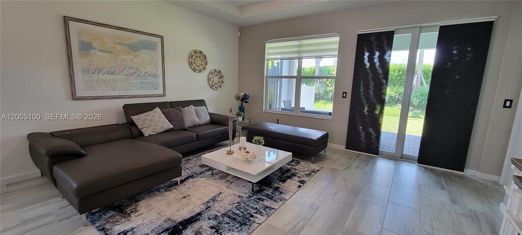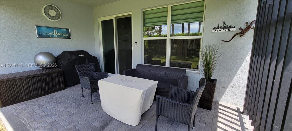 Beautifully maintained one-story home in the desirable Manderlie community of Tradition! This 3-bedroom, 2.5-bath home features an open-concept layout with a versatile ADDITIONAL room perfect for a home office or potential 4th bedroom. The home offers multiple upgrades including quartz countertops, upgraded flooring, stainless steel appliances, white cabinetry, impact windows, and modern lighting. The spacious living and dining areas flow seamlessly, offering plenty of natural light and storage throughout. Step outside to a private patio—perfect for relaxing or entertaining. Additional highlights include a Level 2 EV charger and HOA benefits covering cable, internet, alarm monitoring, and lawn care. Residents enjoy resort-style amenities including a pool, fitness center, dog park, and scenic walking and biking paths. Built by Mattamy Homes and located in one of Port St. Lucie’s most sought-after communities—this home is move-in ready! Everything consider as essential amenities are located near by: Hospitals, pharmacies, schools, restaurants, gym facilities, public transportation, grocery stores, banking & services, parks & recreations & social spaces. Easy access to major roads. MLS # A12005100