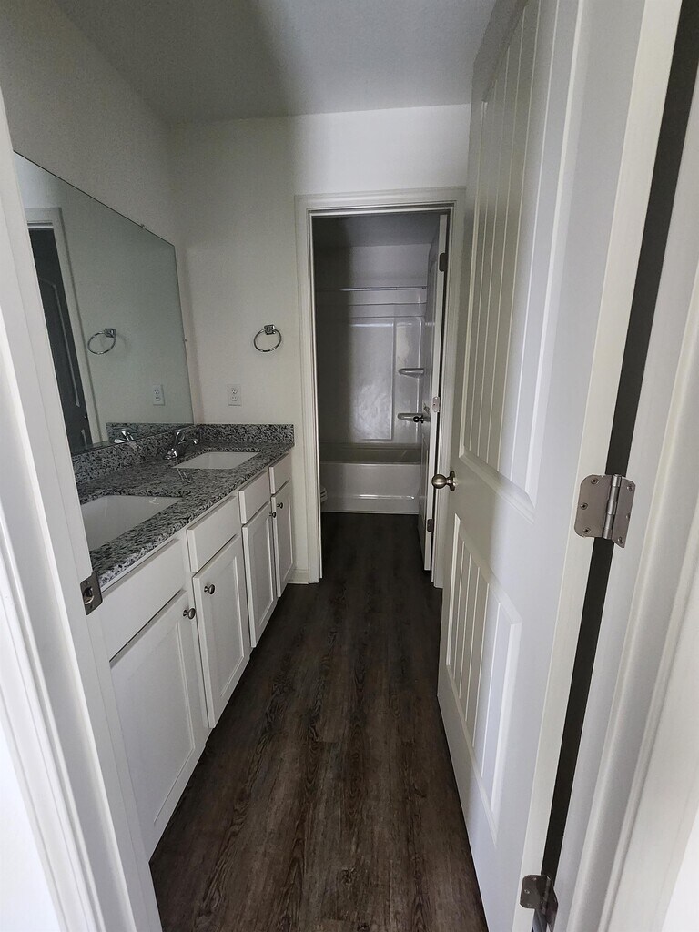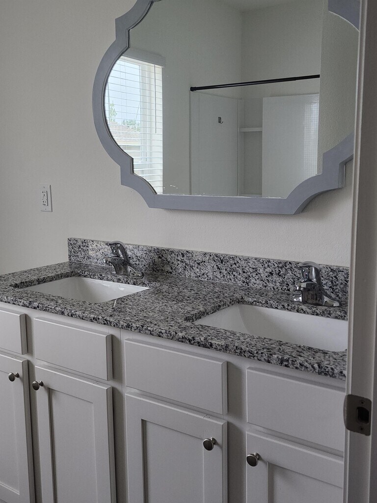 Looking for large space in a beautiful waterfront East Bay Community with access to boat dock, fishing, kayaking,,, this is it! 4 bedroom 2 bath 2 car detached garage offering open floor plan with 4 bedroom and a large bonus room. The master bedroom is downstairs and offers oversized bedroom with walk in closet and double vanities and shower. Standard features include vinyl plank flooring, granite counter tops covered frornt porch and yard maintenance is included. The back yard has a patio space and drive to the back of the detached garage with added parking space to the side. Military discounts will apply and application fees are waived. Small Dog allowed with pet deposit. Located approximate 12 miles to Tyndall Airforce Base, Eastern Ship Building and near restaurants, shopping and grocery stores. Come and see this beautiful home that can be yours before the Holidays. Pictures of the water are of the community boat dock.