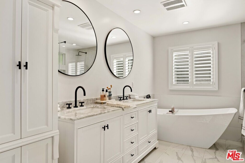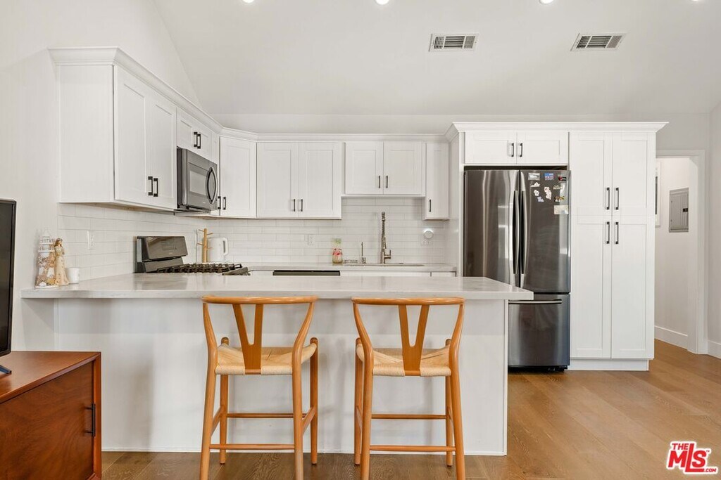 This beautifully renovated single story farmhouse is located in the heart of Colfax Meadows, one of Studio City's most desirable neighborhoods, and is zoned for both Carpenter Avenue Elementary and Colfax Elementary Charter. A thoughtfully designed layout creates an open living area filled with natural light and a comfortable, inviting feel. The kitchen is modern and functional, featuring a stone island, pantry wall, updated appliances, and a dining area that works just as well for casual meals as it does for entertaining. Two en suite bedrooms sit at the front of the home, while the primary suite is tucked away at the rear, offering a quiet and private retreat. A conveniently placed powder room sits near the main living space. A major highlight of the property is the fully permitted backyard ADU, complete with its own kitchen, bathroom, and bedroom. This flexible space is ideal for guests, a home office, or potential rental income. Additional features include plantation shutters, a dedicated laundry room, ample storage, low maintenance artificial turf with an automatic drip system, and a tankless water heater. Set just minutes from popular restaurants, shops, and everyday conveniences, this Colfax Meadows home offers comfort, flexibility, and exceptional value in a prime Studio City location. MLS# 26640165