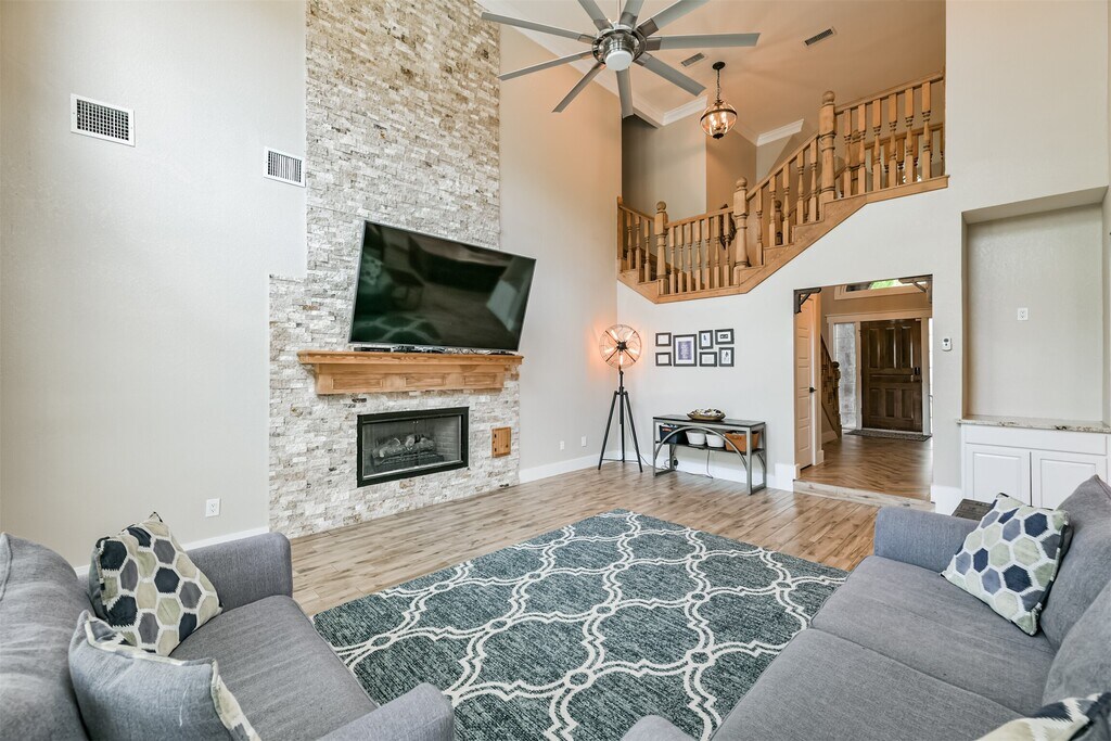 Stunning home located in desirable Lakewood Forest. This 2 story features an expansive layout complete with 4 bedrooms,3 full baths,2 half baths,a formal dining room,dedicated home office,and a 1st floor gameroom/flex room. The kitchen boasts custom cabinetry,a large center island,pot filler,stainless steel appliances & vent hood,3cm granite,subway glass tile backsplash,large walk-in pantry,and an adjoining breakfast room. Impressive family room complete with soaring ceilings,a beautiful floor-to-ceiling stone fireplace,and a wall of windows providing abundant natural light. The home office is enclosed by French doors and has a wall of custom built-ins. The primary suite offers a floor-to-ceiling stone fireplace,and a luxurious bath that includes a freestanding soaking tub,frameless glass shower,and a custom walk-in closet. Renovated guest baths. Nice sized backyard plus a private courtyard. Don't miss it! MLS# 55004420