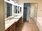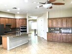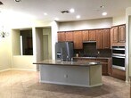Wonderfully large clean home, 5 Bdrm, 3 Full baths. Walk into sizable formal living room that leads into large kitchen family room. Kitchen has multi seated island, 5 burner gas stove, built in microwave, large shelved pantry. The family room has a gas fireplace and sliding glass door that goes out to large backyard. This home has NO carpet. Beautiful wooden floors through out the main home and tile in kitchen and family room. 3 car garage. Single garage has extended bay. Garage has 2 full walls of tall mounted storage shelving. Big backyard for family BBQ. 1 yr Lease.