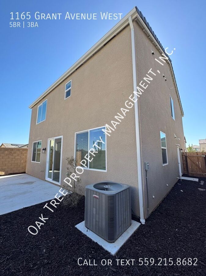 CLICK HERE to schedule a showing: AVAILABLE NOW! Located near Ave 12 and 41, this stunning newly built residence boasts five spacious bedrooms, with four located upstairs and one conveniently situated downstairs, perfect for guests or a home office. The home features three modern bathrooms, a large loft upstairs, and a great room that offers ample space for relaxation and entertainment. The spacious kitchen is a chef's dream, providing plenty of room for culinary creativity. The property is surrounded by a large backyard, ideal for outdoor activities. Solar is included to help reduce your monthly PG&E bills. The location is a standout, with proximity to a variety of restaurants, shopping, and a nearby park with trails and a dog park. Additionally, the home is conveniently close to school. Experience the perfect blend of comfort, convenience, and modern living at 1165 Grant Avenue West. 10 month lease. PETS CONSIDERED. Tenant will be responsible for providing a refrigerator, washer, and dryer. Tenants will be responsible for all utilities including PG&E, solar true up, water, sewer, and trash. All tenants are required to obtain renters insurance prior to taking possession of the property and will be required to submit a profile through prior to final approval. READY TO APPLY? Please visit our direct website at and click on the prospective applicant's tab to download our rental application and return it to our office at 516 Bullard Avenue, Clovis, CA 93612. Close To Restaurants Close To School Close To Shopping Dog Park Five Bedrooms Four Bedrooms Upstairs Great Room Large Backyard Large Loft Upstairs Nearby Park Newly Built Home One Bedroom Downstairs Spacious Kitchen Three Bathrooms Trails