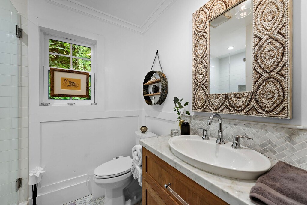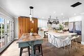 Welcome to this beautifully remodeled and fully furnished home, ideally perched above Laguna Beach with breathtaking ocean and mountain views. This peaceful retreat combines casual elegance with refined comfort and thoughtful amenities. This single-level residence features an open-concept layout ideal for entertaining, with the living, kitchen, and dining areas flowing seamlessly together. The spacious living room includes a romantic wood-burning fireplace with a classic wood mantel, French doors leading to the front and side yards, and French Oak hardwood floors throughout. The chef’s kitchen is a showstopper, featuring state-of-the-art appliances from Viking, Bertazzoni, and Bosch, stunning white marble countertops with full-height backsplash, a center island with bar seating, and a beverage refrigerator—perfect for casual meals or elegant entertaining. The serene primary suite is light-filled and airy, with vaulted ceilings, ocean views, and direct access to a large backyard featuring an elevated ocean-view deck. The en-suite bathroom is luxuriously appointed with dual vanities, a soaking tub, and a spacious walk-in shower. Two additional bedrooms and full baths offer comfortable accommodations for guests or family. The backyard “treehouse” deck is an entertainer’s dream, nestled under a mature Chinese elm and offering both ocean and mountain views. The space includes a fire pit table, lounge seating, a dining table with seating for 12, a gourmet grill, and a professional-grade paella burner with pans. Additional amenities include weekly maid and gardening service, air conditioning and heating, inside washer and dryer, high-speed fiber optic WiFi with Eero boosters, beach gear, surfboards, security system, free street parking, finished garage entertaining space with cork flooring, large-screen Apple TV, XBox One, two workstations, and bonus sleeping accommodations. Everything is designed for comfort, relaxation, and making unforgettable coastal memories. Just a short walk to the heart of downtown Laguna Beach, you’ll have easy access to pristine beaches, art galleries, live music, world-class dining, and year-round cultural festivals.