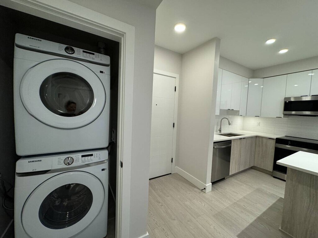 Walking distance to the West Coast Express with access to an excellent building gym, this bright and modern approximately 700 sq. ft. one-bedroom plus den condo is ideally located in the heart of Maple Ridge and offers a versatile den large enough to potentially accommodate a single bed, making it perfect as a child’s room, work-from-home office, or flexible living space; features include high-end appliances, in-suite laundry, dishwasher and microwave, one secure underground parking stall, and a fully equipped on-site gym, all within an easy 10-minute walk to Walmart, Save-On-Foods, shopping, recreation, and everyday amenities, with long-term tenancy preferred and a small pet may be considered with deposit and references.