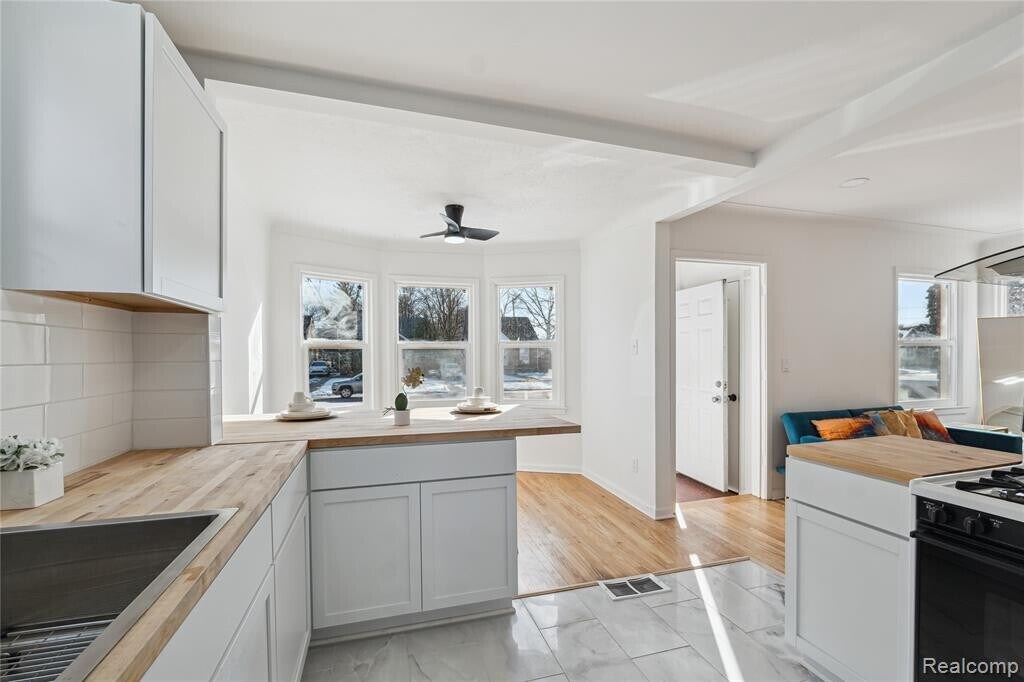 This beautifully updated 3-bedroom, 1.5-bath brick bungalow offers the perfect blend of classic charm and modern convenience. Natural light fills the spacious layout, highlighting the stunning wood floors throughout. The inviting living room features a cozy fireplace, creating a warm and welcoming atmosphere. The updated kitchen boasts sleek butcher block countertops, providing both style and functionality. Each bedroom is generously sized, offering plenty of space to relax and unwind. The bathroom showcases a beautiful, modern design with high-end finishes. A full basement with a half bath adds extra versatility, perfect for storage or additional living space. Outside, enjoy privacy and security with a brand-new fence, plus the convenience of a 1-car garage. Showings by appointment only—24-hour notice required. Don’t miss out on this stunning home!
