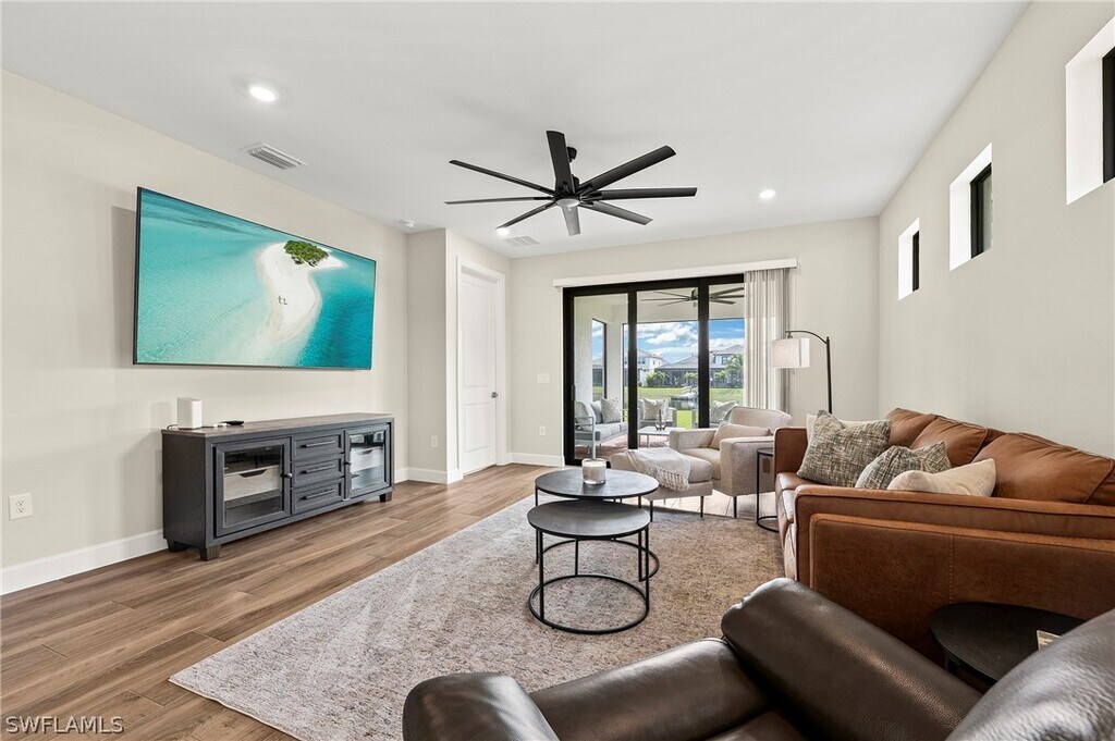 POOL HOME: THIS VILLA IS AVAILABLE ANNUALLY STARTING MAY 1ST @ $4,400/MONTH. POOL AND PEST CONTROL SERVICES ARE INCLUDED. ALL NEW FURNISHINGS AND A BRAND NEW POOL & SPA WITH A BEAUTIFUL LAKE VIEW! Discover Your Oasis with Stunning Lake Views at Esplanade Lake Club! Step into a haven of luxury and tranquility in this exquisite 2-bedroom,2-bathroom villa,complete with a flexible den/office space. From the moment you enter the villa,you are welcomed into an open-concept design and breathtaking lake views framed by lush greenery. The gourmet kitchen,a chef’s dream,features top-of-the-line stainless steel appliances,sleek quartz countertops,and a spacious island ideal for gatherings or culinary creations. The versatile den invites you to craft a space tailored to your needs—be it a home office,a creative studio,or a guest retreat. The master suite offers a private sanctuary,complete with a generous walk-in closet and an en-suite bath that evokes spa-like serenity. Every corner of this villa is designed with comfort and sophistication in mind,while the picturesque lake view adds an unparalleled sense of calm and beauty. Esplanade Lake Club redefines resort living with a range of premium amenities,such as a Lagoon-Style Pool & Bahama Bar where you can relax in style and enjoy poolside dining in a tropical setting. Maintain your active lifestyle out on the tennis,pickleball,and bocce courts,and inside the state-of-the-art fitness center. Experience waterfront bliss by kayaking,paddle boarding,or simply unwinding along the private lake and sandy beach. Explore scenic trails beautifully landscaped perfect for jogging or leisurely strolls. Spend your days and evenings meeting the neighbors by joining in on vibrant community events and enjoying game nights in a social hub like no other! Conveniently located near Fort Myers Airport,world-class shopping,and dining options,this villa offers the perfect balance of active living and a peaceful retreat. Your luxurious lakefront escape awaits—schedule your private tour today!