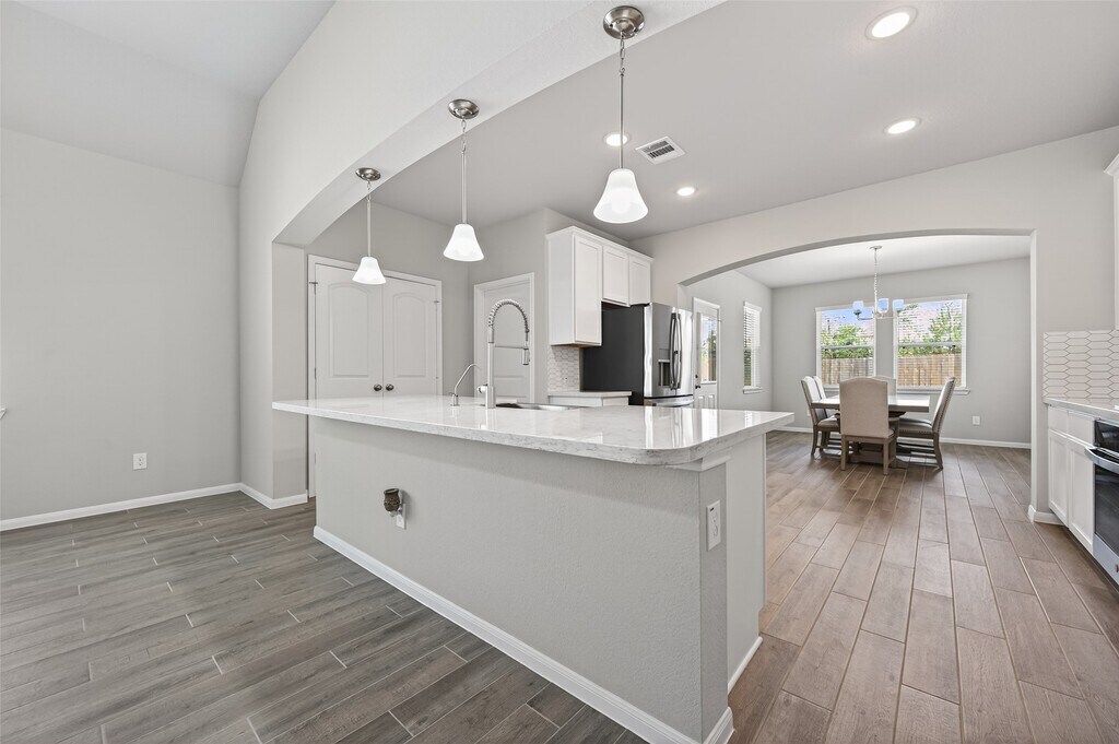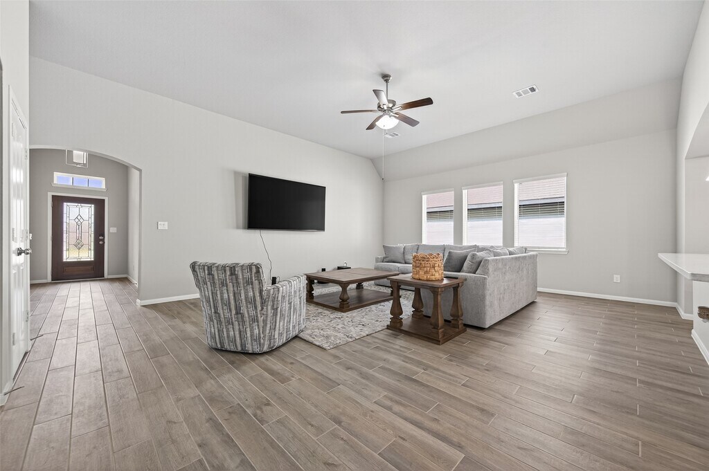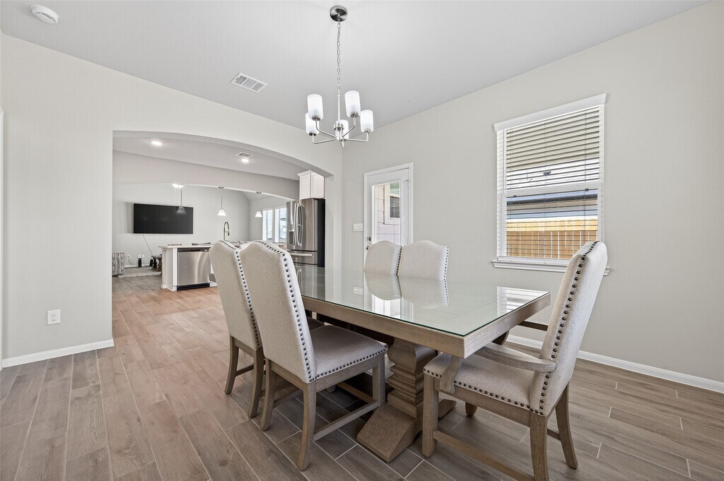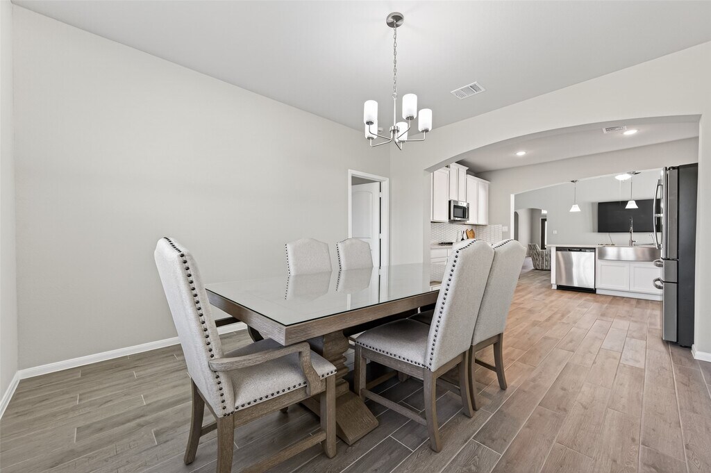 Welcome to this beautiful one-story home featuring 3 bedrooms,2 bathrooms,and a private office with a closet—perfect for working from home or flexible living space. Tall ceilings and an open-concept layout create a bright,spacious feel throughout. The stunning kitchen overlooks the living room and features an oversized island with quartz countertops and a stylish mosaic backsplash,making it perfect for entertaining and everyday living. Enjoy relaxing or hosting outdoors on the covered back patio. This thoughtfully designed home blends comfort,functionality,and modern finishes,creating an inviting space you’ll love coming home to. MLS# 26191126
