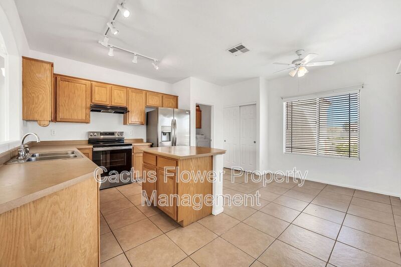 Discover a peaceful lifestyle in this well-maintained, 1,459-square-foot single-family home located in a quiet, established neighborhood of Arizona City. Built in 2006, the residence welcomes you with an open-concept layout that maximizes space and comfort. The heart of the home is a gourmet kitchen featuring a central island with a breakfast bar, ample oak cabinetry, built-in appliances, and a functional pantry, all illuminated by modern track lighting. The split floor plan ensures privacy, with a primary suite that serves as a true retreat. This spacious bedroom includes a generous walk-in closet and an ensuite bathroom equipped with dual sinks and a deep garden tub for relaxation. Two additional bedrooms provide flexibility for family, guests, or a dedicated home office. Throughout the interior, nine-foot flat ceilings enhance the airy feel, complemented by a mix of low-maintenance tile and soft carpeting. Practicality meets outdoor enjoyment with a two-car attached garage and a large lot that offers plenty of room for desert living. The home is equipped with central air conditioning and efficient electric heating to keep you comfortable year-round. Located near local schools and with easy access to Sunland Gin Road, this property provides a serene escape without sacrificing proximity to shopping and essential services.