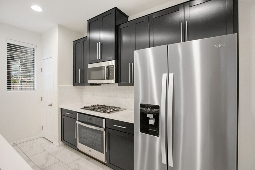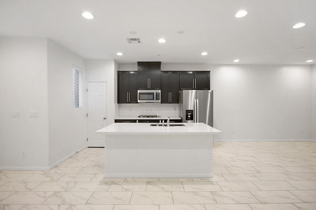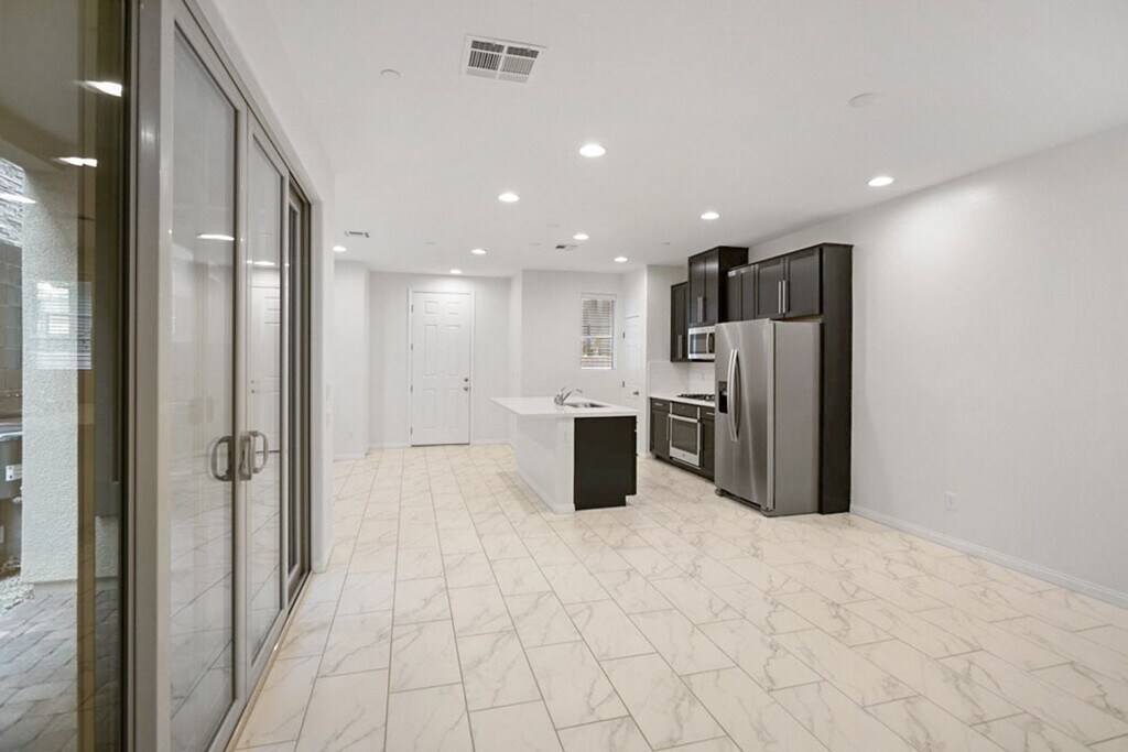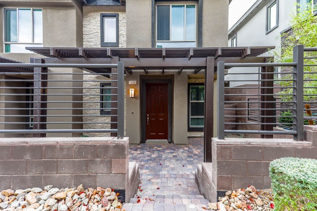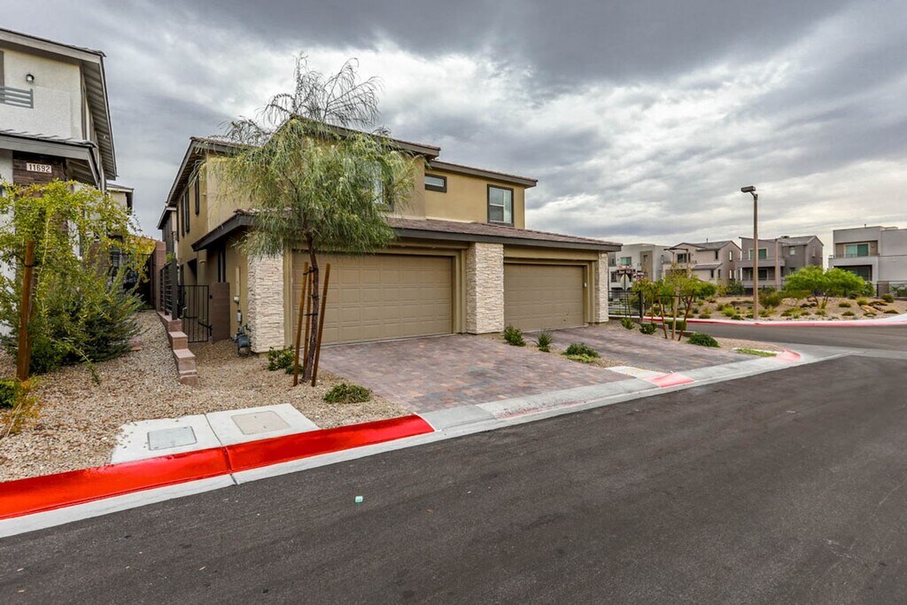 Beautiful 3 bedroom townhouse with 2 car, attached garage with entry to house and auto door opener; Beautifully upgraded with tile flooring throughout the 1st floor, and upgraded carpet on the 2nd; Island kitchen with quartz countertops, breakfast bar, pantry, stainless appliances including built in over, gas cooktop stove, microwave and refrigerator; Living room with covered patio; Great storage area under the stairs; Primary suite with walk in closet, cable outlet, double sink and large walk in shower; Laundry room with full size stackable washer and dryer; Convenient to the 215, Red Rock Casino, Aviator's baseball stadium, Red Rock National Park, Downtown Summerlin and so much more! (Total Rent: $2545; $2450 Rent + $45 RBP + $30 Sewer + $20 Trash)