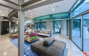 This estate is additionally available for purchase at $31,999,000. A sculptural glass and steel showpiece by renowned architect Edward R. Niles, this one-of-a-kind estate crowns a private knoll within the City of Beverly Hills, offering full city services and global prestige. Tucked at the end of a quiet cul-de-sac with unobstructed views from downtown to the ocean, the residence is defined by sweeping circular glass walls, a curving steel structure, and a dramatic central courtyard that seamlessly integrates indoor and outdoor living. Designed as a living sculpture, the home features six bedrooms, seven bathrooms, a private elevator, 7-car garage, infinity-edge pool, and light-filled interiors that capture panoramic vistas from every angle. For long-term lease, the initial term shall be six months with the option to renew thereafter. MLS# 25564593