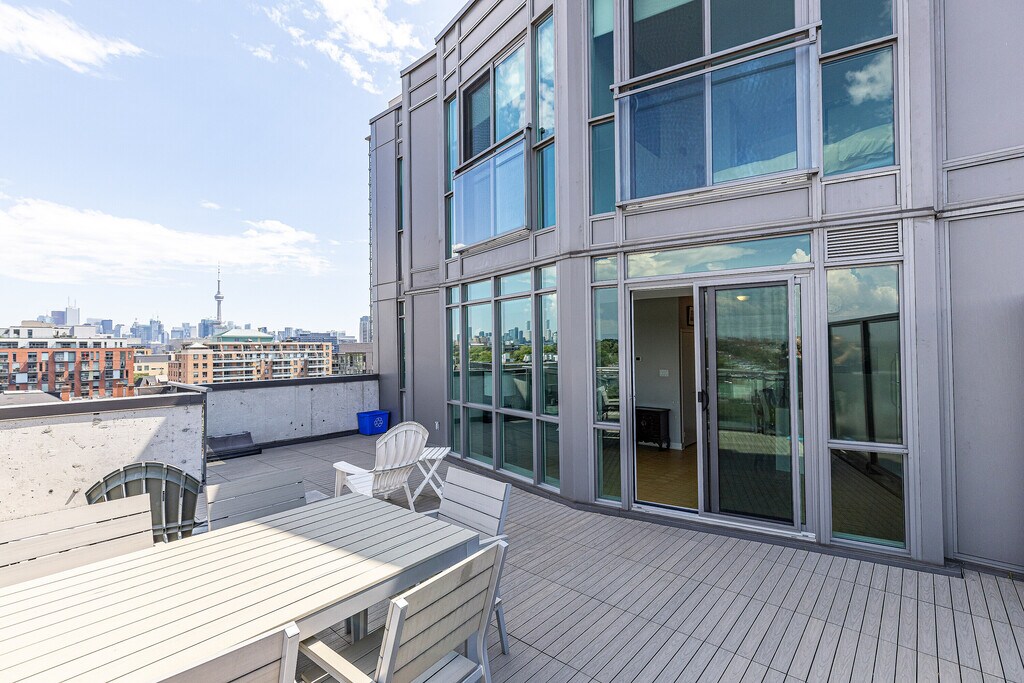 Penthouse two-level condo in the heart of Queen West – one of Toronto's most coveted neighbourhoods. This exceptional two-bedroom residence offers a unique, family-friendly layout with seamless indoor-outdoor flow and an expansive private terrace overlooking the vibrancy of Queen West and the iconic Drake Hotel. Ideal for entertaining, the terrace provides sweeping city views and direct access from the main living areas, creating a rare urban oasis perfect for gatherings or quiet mornings. Bright, open-concept living spaces on the main level flow to the terrace, while the upper level provides privacy and flexible bedroom configurations. Thoughtful finishes and a smart floorplan deliver modern comfort without sacrificing character. Pet-friendly building, steps to a nearby dog park, and easy access to public transit and major highways make daily life effortless. Can be furnished by Landlord if so desired. Experience the best of urban living – culture, dining, nightlife and green space at your doorstep in this standout Queen West penthouse.