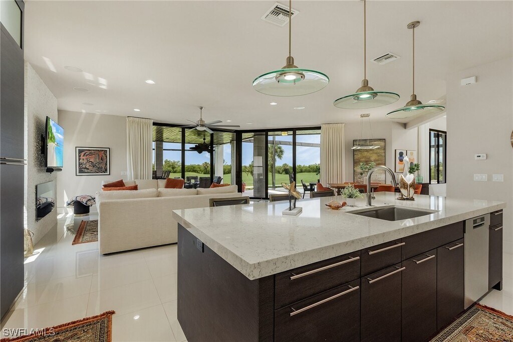 Step into the epitome of luxury living with this exceptional 2-story,5-bedroom,3.5-bath resort-style pool home nestled in the prestigious Cape Royal community of Southwest Florida. Honored with an Aurora Award for architectural excellence in the Southeastern United States,this distinguished property has graced the pages of Grandeur magazine,News Press,and Architectural Digest. Enjoy stunning western exposure providing unobstructed views of Southwest Florida's mesmerizing sunsets. Embrace a world-class lifestyle with access to the acclaimed 27-hole Cape Royal golf course,perfect for golf enthusiasts and families seeking the ultimate Florida experience. Relax in the expansive saltwater pool and spa,complemented by poolside games,an outdoor kitchen with a bar,and big-screen TVs for seamless entertainment. Gather around the fire pit for cozy evenings under the stars. Inside,discover Cambria quartz countertops and European dark wood cabinets throughout,creating an ambiance of timeless elegance and functionality. The upstairs master suite boasts a spacious bathroom with an inviting walk-in shower. Step onto the balcony from the master suite and soak in panoramic views of the pool,golf course,and serene lake. This exclusive property offers an unparalleled opportunity to indulge in luxury living,whether you're hosting gatherings with friends or seeking a tranquil family retreat. Experience the ultimate in comfort and sophistication in one of Cape Royal's most coveted homes. Don't wait,schedule your showing today for a chance to experience this amazing property!