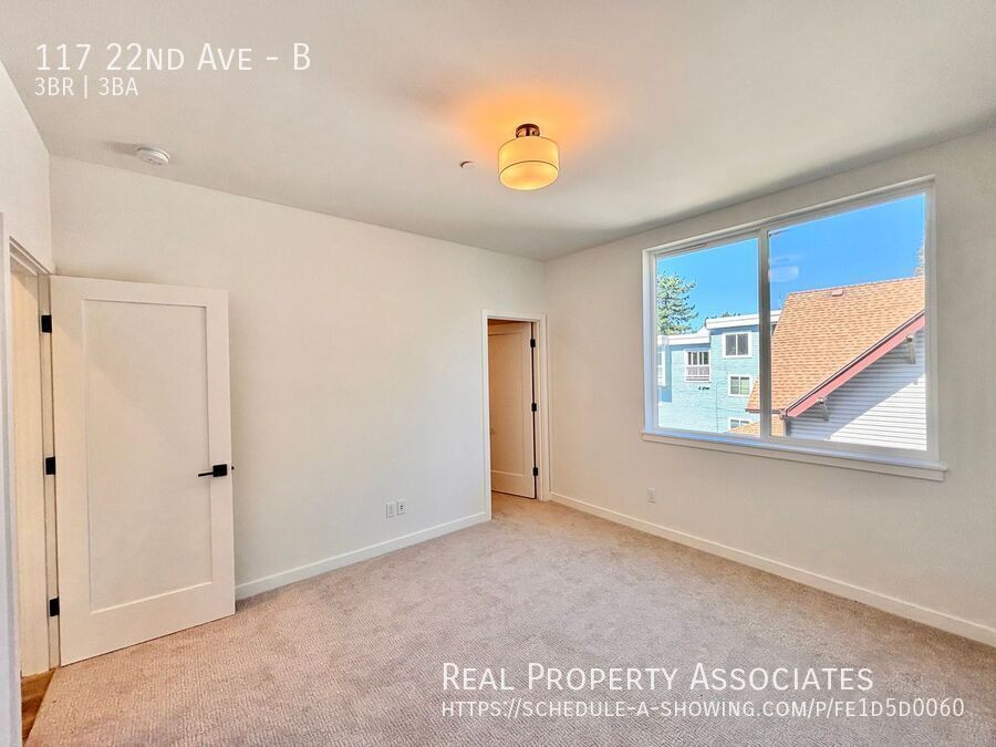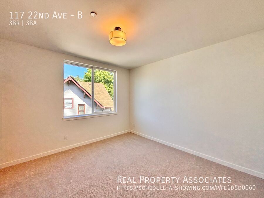 1 MONTH FREE SPECIAL! Original rent rate it $4,295 but with a 1 month free special, that brings monthly rent down to $3,995! Welcome to your new home in one of Seattle’s most vibrant and sought-after neighborhoods — the Central District. This brand-new 3-bedroom, 3-bathroom residence offers 1,667 sqft of thoughtfully designed living space, blending modern luxury with everyday comfort. Step inside to discover spacious, carpeted bedrooms — each featuring large walk-in closets for maximum storage and convenience. The master suite is your private retreat, complete with a luxurious en-suite bathroom boasting heated floors for ultimate relaxation. Natural light pours in all day long through oversized windows, creating a bright and airy ambiance throughout the home. The open-concept layout makes it perfect for entertaining, working from home, or simply enjoying a peaceful evening. Top it all off with access to a stunning rooftop deck — ideal for enjoying panoramic views of the city, hosting friends, or soaking in Seattle sunsets. Don't miss the chance to live in this exceptional home in a prime location — close to dining, parks, transit, and everything the Central District has to offer. Available now – schedule your tour today! 12-Month Lease Available Tenants responsible for all utilities Application: $45 per person/adult. Available Now, First & Deposit. Refundable Security Deposit: $3,695 Pet possible with prior approval - $30 pet application - 1 pet max, no aggressive breeds $300 refundable pet deposit and $35 monthly pet rent ***TO SCHEDULE A SHOWING***: Renter's legal liability insurance is required and part of the Benefits Package ($30 monthly). If qualifying legal liability insurance is purchased and provided by tenant to RPA, the benefit package can be reduced to $15 monthly for reduced benefits or waived upon request. Professionally managed by: Real Property Associates, Inc. Please contact or call *In-person Tour Only **Applicant Criteria - ***Please visit our company site at for accurate information regarding unit pricing and availability Brand New Construction Gourmet Kitchen Great Views Heated Bathroom Floors Pet Friendly Residential Neighborhood Townhome Townhouse