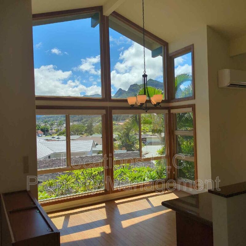 Executive home located in exclusive Enchanted Lake, just blocks from Kaelepulu Elementary School. Kailua Town nearby with Whole Foods, Target, Tokyo Central, CVS Longs, CPK, and many more dining and entertainment options. World famous Kailua Beach Park, Lanikai Beach, and the Pill Box hiking trail minutes away. Easy drive to K-Bay, Pali Hwy to downtown, LikeLike Hwy to the westside, and H3 right to Pearl Harbor / Honolulu International Airport. Extensive remodel just completed Kitchen and Master bathroom new cabinets, countertops, and appliances. New interior and exterior paint, and flooring. Split A/C and ceiling fans throughout, with a beautiful covered lanai. Spacious split level floor plan almost 1600 sq ft., with vaulted ceilings, great air flow and light. Beautiful views of Kailua and the Koolau mountains, as well as Mt. Olomana. Two car garage and additional storage. Beautiful hardwood / LVP flooring. Come home to paradise. 1 yr. Lease Pet Negotiable No Smoking Available for immediate occupancy, rented as shown. Application processing fee $30.00 per person, all 18 and over must apply. Locations LLC. 677 Ala Moana Blvd. #308 Honolulu, HI 96813