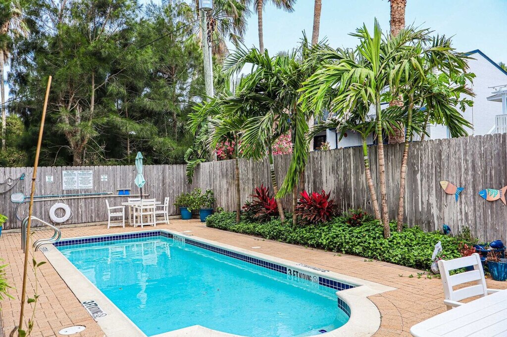 This beautiful two-bedroom, two-bath apartment offers all the comforts of home and sleeps up to six guests. Ideally located, it's just a short walk to the beach or Padre Boulevard, making it a perfect spot for your stay. The open and spacious living area includes a couch that converts into a queen-size bed and a large flat-screen television with extended cable for your entertainment. The apartment features a state-of-the-art kitchen with stainless steel appliances and is fully stocked with cookware, crockery, and utensils. The dining area is adjacent to the kitchen, next to a closet housing a stackable washer/dryer. The first bedroom includes bunk beds with full-sized mattresses and a television for viewing from bed. The master bedroom boasts a king-size bed, a walk-in closet, an attached bath, and an entertainment unit, with a window overlooking the lovely surroundings. A back door from the master bedroom leads to the pool, enhancing the inviting and spacious feel of the unit. The location is perfect for enjoying the island's attractions, with a short walk to the beach or Padre Boulevard. Explore shopping, fishing, swimming, surfing, and nearby attractions such as Sea Turtle Inc, South Padre Island Birding Nature and Alligator Sanctuary, Island Adventure Park, Gravity Adventure Park, The Stables, and Coastal Studies Lab. The primary renter must be 29 years of age or older. This apartment is for families only, ensuring a peaceful environment for your stay.