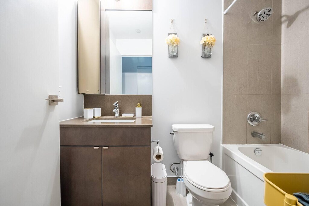 Discover the vibrant lifestyle at Yonge & Eglinton with this open-concept gem, just steps from the subway. This apartment offers direct access to Loblaws within the building and is surrounded by a plethora of restaurants, movie theaters, and shopping destinations. Enjoy building amenities such as an indoor pool, gym, sauna, steam room, and hot tub, making it easy to feel at home. This comfortable suite has everything you need to make you feel right at home. The fully functional kitchen comes with supplies including tea, coffee, a kettle, coffeemaker, and toaster. Additionally, the apartment features a washer and dryer with supplies, and two bathrooms equipped with towels, shampoo, conditioner, body wash, a hair dryer, and other toiletries you may have forgotten. Paid underground parking with in/out privileges is available upon request for $25 per night. It's recommended to request it in advance due to limited availability. Pets are welcome with a fee of $20 per night for one pet, and prior confirmation is required. Travel cribs for babies aged 0-18 months and bed rails are available for $10 per item per night, and should be booked in advance. Located just steps from Eglinton Subway Station, this apartment offers easy access to public transportation. The closest airport is Billy Bishop Toronto City Airport, making travel convenient for residents. Guests must be 25 or over to check in, with an exception for reservations of 7 nights or more, allowing check-in from age 18 with an increased deposit of 500 CAD. All guests' names and ID details must be provided to condo management prior to arrival. Guests whose names or ID do not match the information given are not allowed into the building. Smoking inside, damage to the unit, or violation of house rules will result in the forfeiture of the deposit.