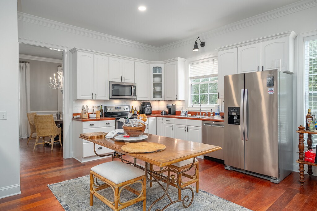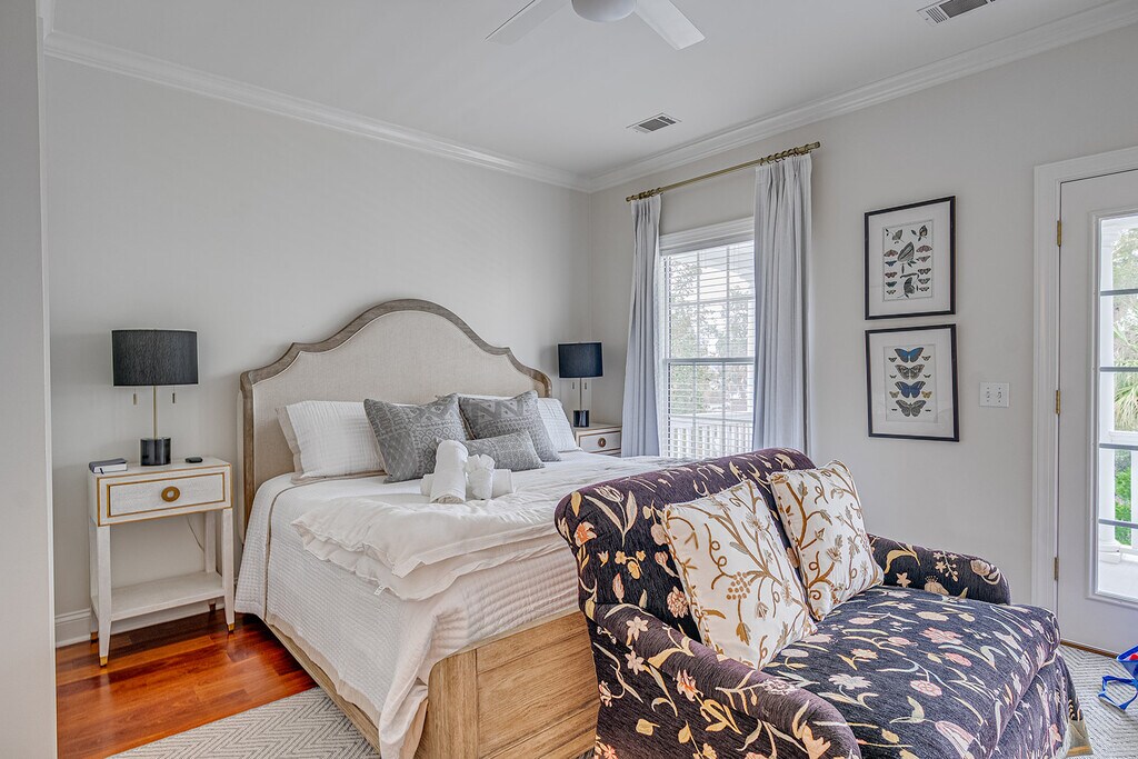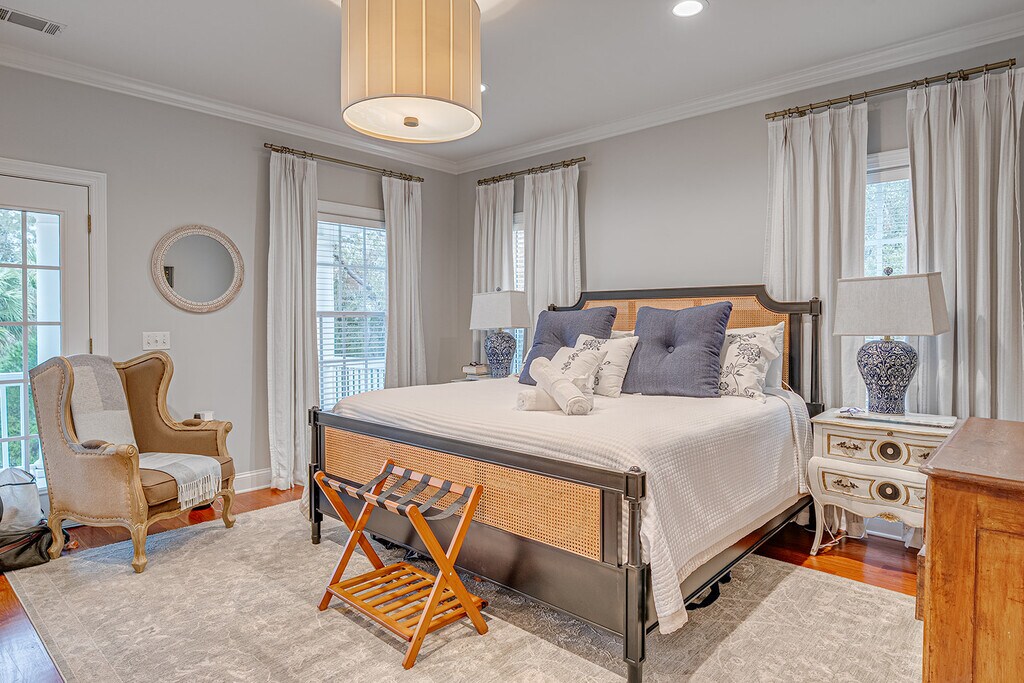 This home is available for guests looking for a 31+ night rental. Specific pricing is available upon request. Monthly rates range from $8500-$10000/month and final rates are based on season and length of stay. *Fully furnished- utilities/internet included* Welcome to The Fairwind! Nestled within the prestigious Savannah Yacht Club, The Fairwind is a grand, private retreat where timeless Southern charm meets modern luxury. Tucked away on a secluded drive, this exquisite four-bedroom, four-bathroom home offers an unparalleled sense of privacy while remaining just 10 minutes from Savannah’s Historic District and 15 minutes from the South Side’s medical campuses. Designed for relaxation and entertainment, The Fairwind is the ultimate Lowcountry getaway. What Makes The Fairwind Special? -Unmatched Location: Set in one of Savannah’s most sought-after neighborhoods, The Fairwind provides exclusive access to the yacht club’s premier amenities, including pickleball and tennis courts, a marina, and an on-site restaurant. Whether you’re here for leisure or an extended stay, this location offers both seclusion and convenience. - Southern Elegance & Thoughtful Design: From the striking grand staircase leading to the second-story entrance to the expansive two-story porches, every detail of this home reflects true Southern sophistication. Curated by a local interior designer, the space seamlessly blends historic charm with modern comfort, ensuring a refined yet welcoming atmosphere. - Expansive Outdoor Living: Designed for entertaining, the screened-in porch features an outdoor dining table and cozy patio seating, perfect for enjoying morning coffee or evening cocktails. The spacious yard provides ample room for dinner parties, oyster roasts, or simply letting the kids play and explore. This stunning home features four bedrooms and four bathrooms, all located on the top floor for ultimate privacy and comfort. The primary suite boasts a king bed, two walk-in closets, and access to a second-story porch with partial water views. Its spa-like ensuite bathroom is a true retreat, complete with a soaking tub with a built-in television, a walk-in shower, and elegant marble floors. The second bedroom also offers a king bed and ample storage, while the third and fourth bedrooms each feature queen beds. The fourth bedroom includes a private ensuite bathroom, beautifully renovated for modern comfort, while the second and third bedrooms share a stylishly updated hallway bathroom. Sleeping configuration: Bedroom 1: King Bed Bedroom 2: King Bed Bedroom 3: Queen Bed Bedroom 4: Queen Bed What is parking like for this home? Guests will have access to an ample amount of private parking via driveway, or can utilize the two-car garage. The garage can accommodate mid-size SUV's, however trucks and large SUV's are advised to park outside.
