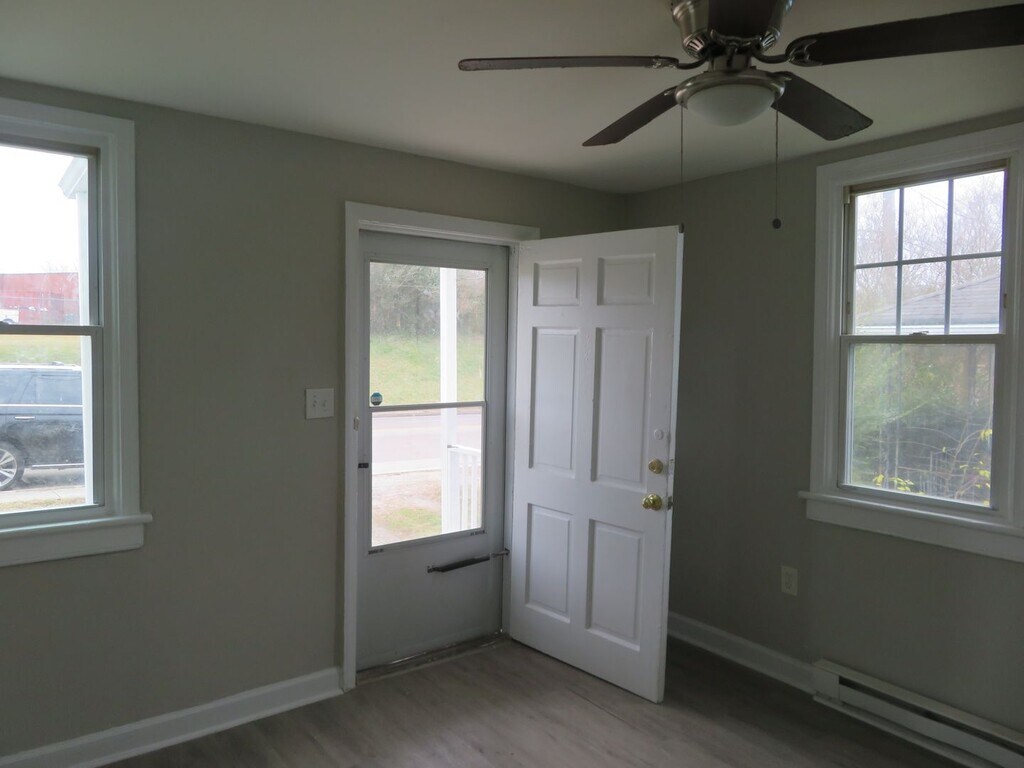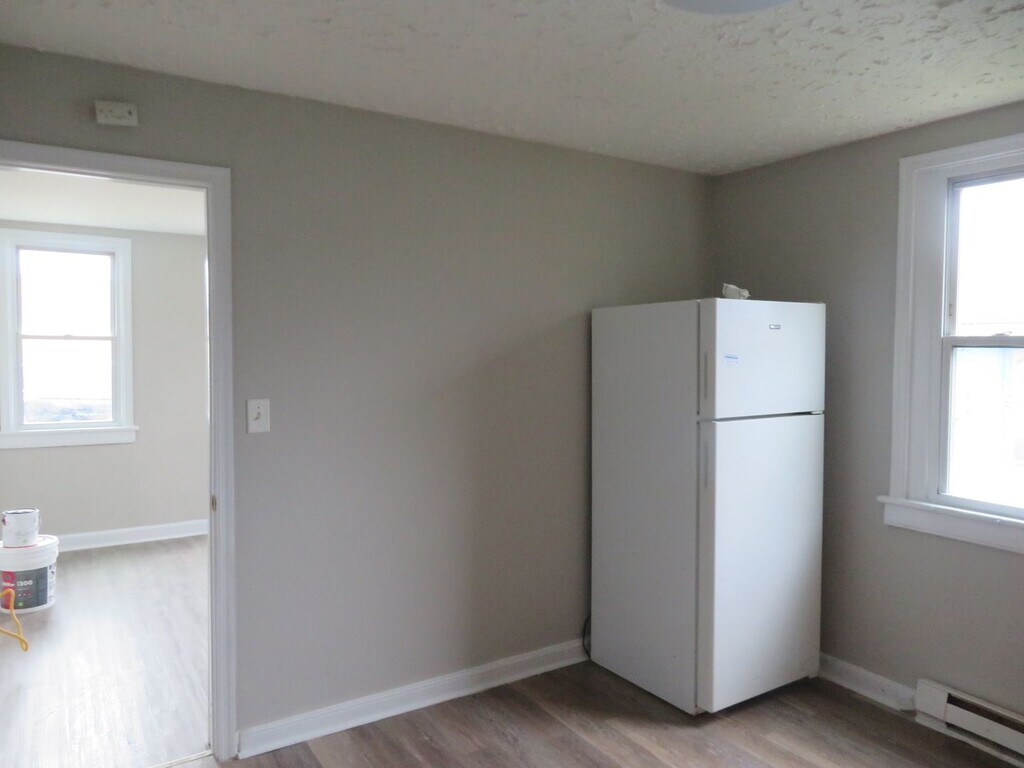This is a two bedroom, one bathroom duplex that has electric baseboard heat, supplemental gas wall-furnace, stove, refrigerator and microwave. No animals are allowed.