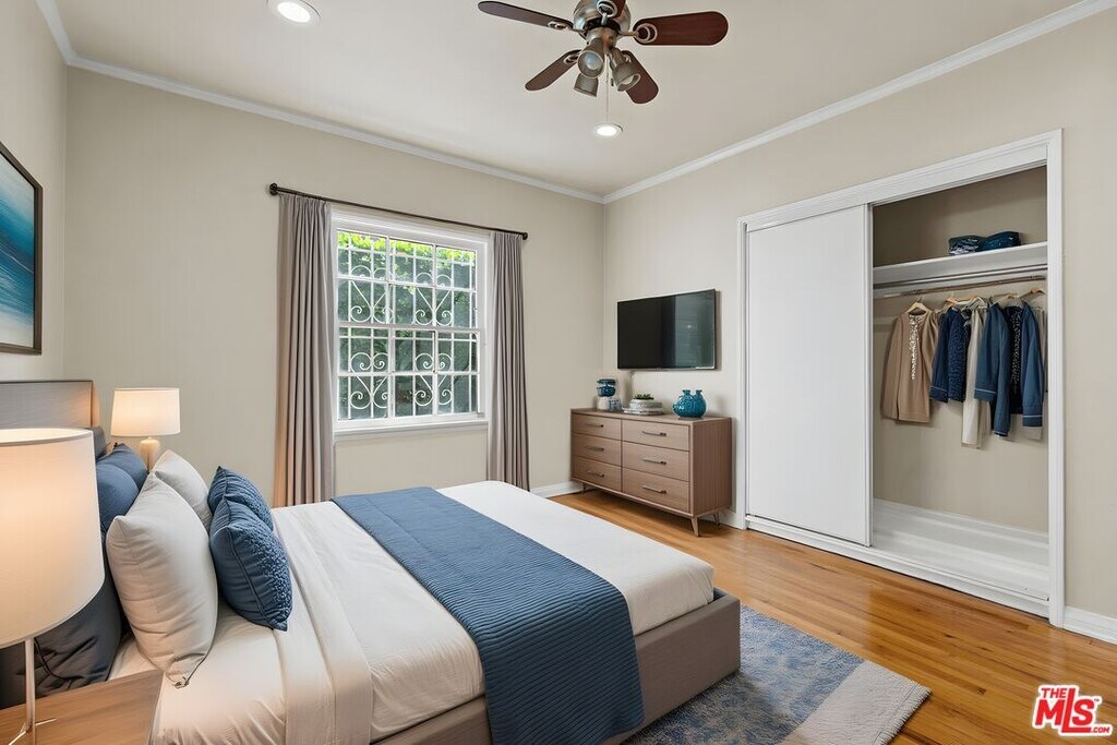 Remodeled 2 bed + 1.5 bath residence in a charming French Normandy building with only 5 units - perfectly situated adjacent to Beverly Hills. Prime location minutes from Rodeo Drive, Beverly Center, Sunset Strip, LACMA, Farmers Market, Cedars-Sinai, Kings Road Cafe, premier shopping, dining, parks, and more. This light-filled home features a spacious living room, dining area, hardwood floors, and stainless steel appliances. In-unit laundry with extra storage, plus a private large front covered patio ideal for indoor-outdoor living. Detached 1-car garage included. Owner covers water; tenant responsible for electricity and gas. No smoking of any kind permitted. Dogs under 15 lbs. considered. Rare offering on a quiet, picturesque street. 13+ Month Lease Term MLS# 25600013