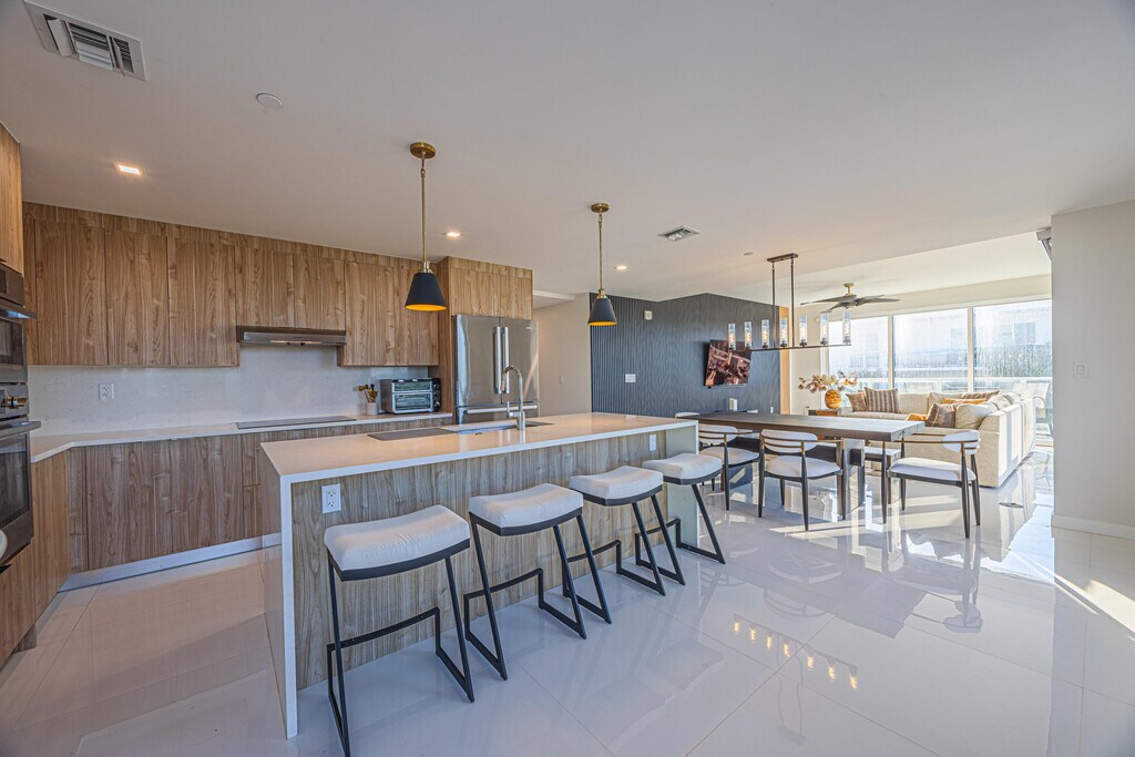 Modern and contemporary, fully furnished and turnkey, 2 bedroom 4th floor condo on Lake Ave in the heart of Lake Worth Beach. Surrounded by shops and restaurants, walk to the intracoastal waterway; one mile from Palm Beach oceanfront and 10 minutes to downtown West Palm Beach. Spacious and exquisitely furnished with wrap around balcony, open kitchen with large island, deluxe appliances. Breakfast bar with wine cooler, washer and dryer with deep sink. Primary bedroom has double sink and glass enclosed tub and shower. Guest bedroom has private ensuite bath with shower. Impact glass windows with remote control blinds throughout. Enjoy the rooftop pool, sun deck and BBQ area. Two covered parking spaces in secure garage. Offered for annual rent or seasonal 6 month lease.