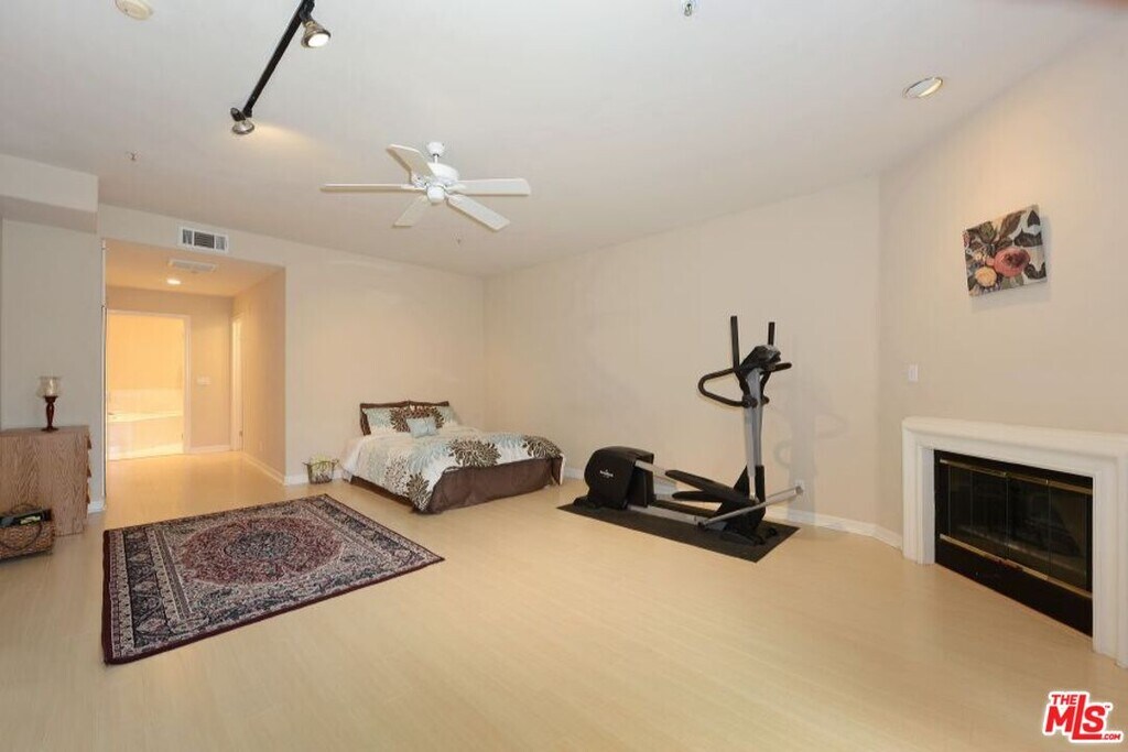 Front facing 2 bed, 1.5 bath bright and spacious condo in Beverly Hills. A+ location close to the Beverly Center and The Grove. Formal entry leads to an open kitchen overlooking both living and dining areas, complete with high ceilings, oversized windows, and airy floor plan perfect for entertaining. The kitchen features stainless steel appliances, beautiful granite counter tops, and an abundance of cabinet space. Wide hallway with built-ins and closet lead to a second bedroom/office and huge primary suite. The primary bedroom boasts a walk-in closet, decorative fireplace, and en suite bathroom with dual sink vanity and spa/jacuzzi tub. One assigned parking spot and extra guest spots in the gated garage; permit street parking available. Washer/dryer in-unit along with central AC. Small dogs ok. MLS# 25601095