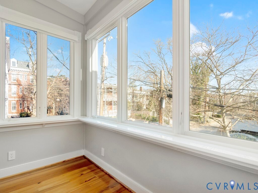 Beautiful Row House in Fan District. Upstairs is two bedrooms: master bedroom with arched architecture and connecting office or den,2nd bedroom with connecting sunroom and full bathroom Downstairs Formal Sitting Room connecting to an office or den,eat In Kitchen and full bathroom (shower). Enclosed private back deck. Awning on back deck for relaxing and sipping hot cocoa and mint julep tea! Available SUNDAY,FEBRUARY 15th. Note: Tenant responsible for filing for parking permit with city of Richmond as tenant must show ratified lease. Renters insurance required. Also all fireplaces are for show only and not to be used.
