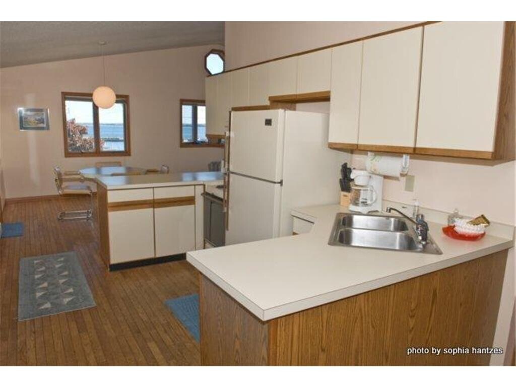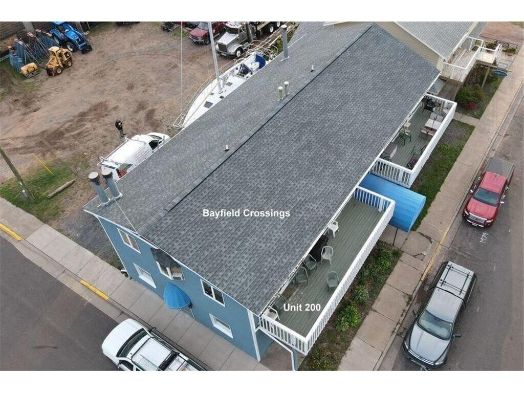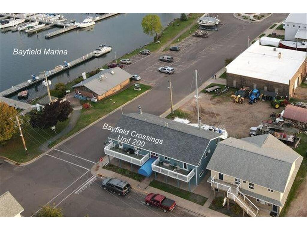 Bayfield Crossings East facing second floor 2 bedroom 2 bath furnished condominium located in the heart of Bayfield...Lofted ceilings...hardwood floors...across the street from Bayfield Harbor...great views of Lake Superior...walking distance to restaurants and shops...washer and dryer in unit.