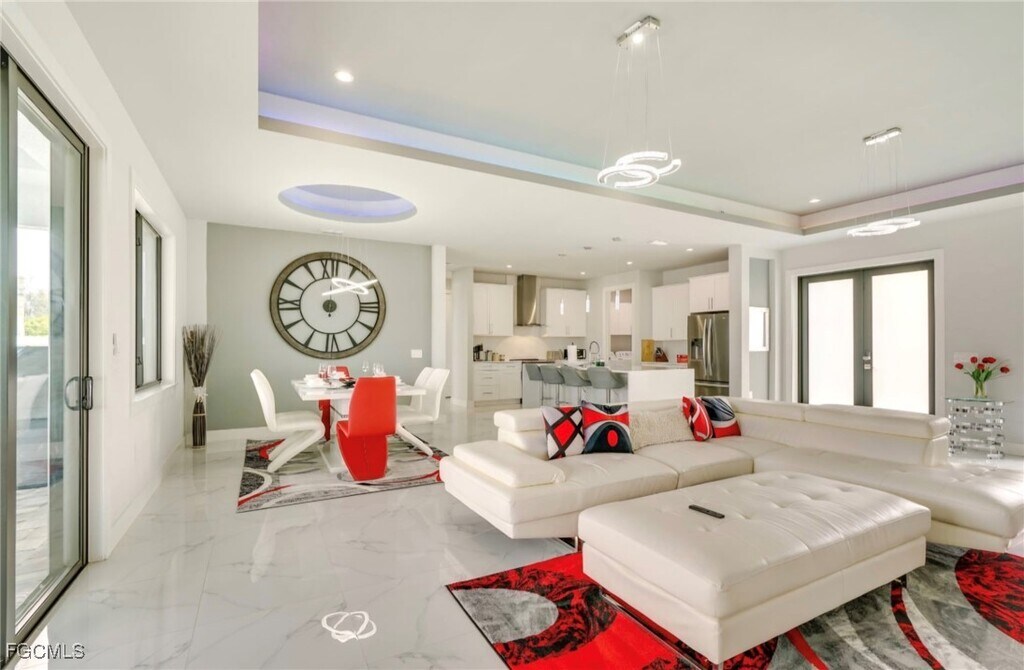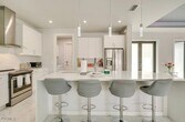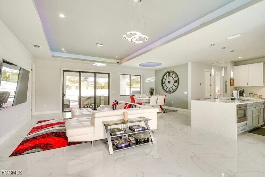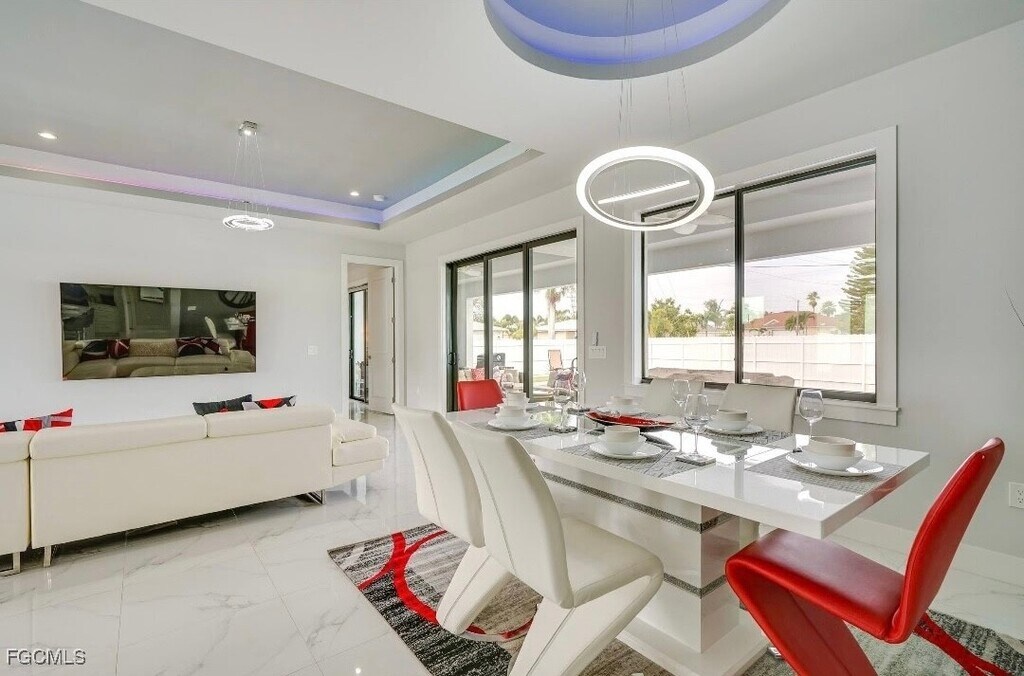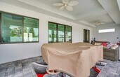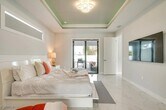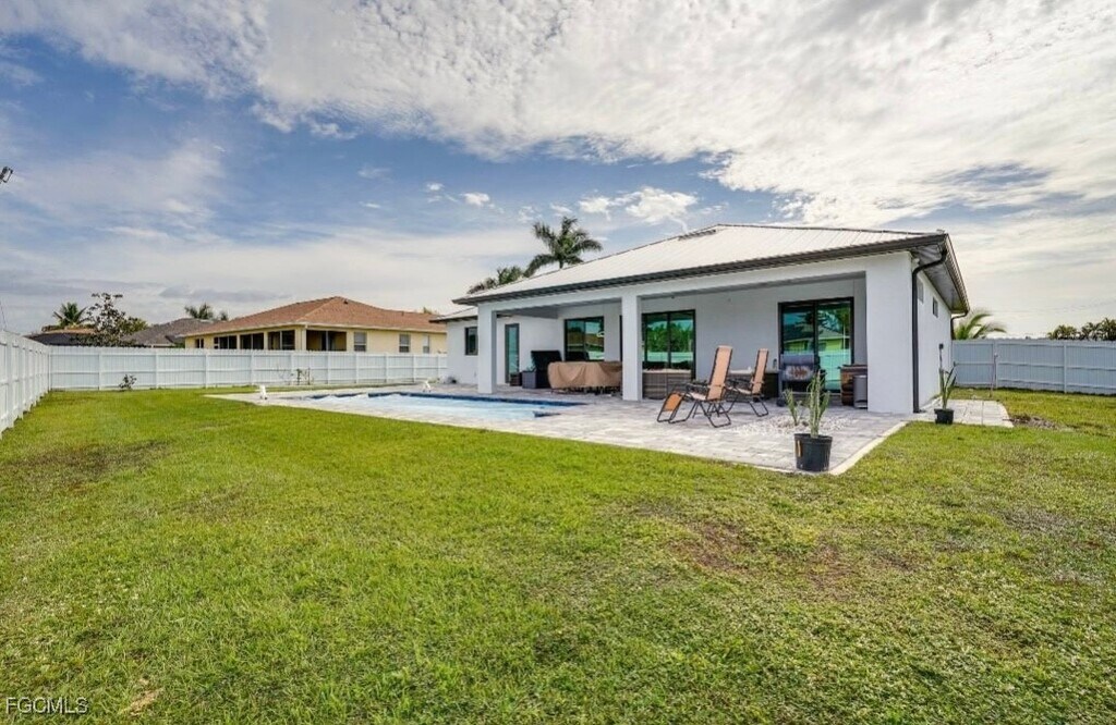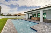 Newer 3 Bedroom,2 Bath Pool Home on Oversized Corner Lot Beautifully furnished newer-built 3-bedroom,2-bath pool home featuring impact windows,a metal roof,and a fully fenced yard on an oversized corner lot. This stylish home offers modern comforts and thoughtful upgrades,including color-changing LED lights in the tray ceilings,automatic shades in the primary bedroom,and TVs in every room. The open concept living area leads out to a sparkling saltwater heated pool with a convenient pool bath,perfect for entertaining or relaxing. Sleeping arrangements include two twin beds in one guest room,a queen low-profile bed in the second guest room,and a king-size bed in the main bedroom. Enjoy the perfect blend of luxury,comfort,and privacy—all just minutes from shopping,dining,and local attractions.
