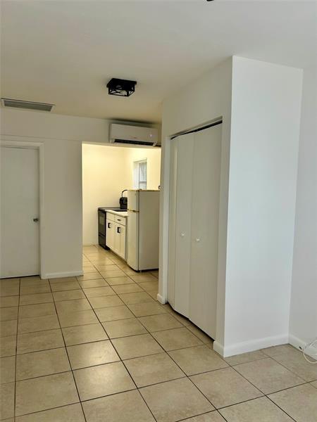 Freshly painted in crisp white, this luminous efficiency, attached to main house, features a brand-new kitchen with updated cabinets and countertop, plus essential appliances including new refrigerator, oven, and microwave. The space offers modern comfort with updated air conditioning, ceiling fans, and abundant natural light. Two convenient parking spaces. Electricity, water and sewer included in the rent. No condo approval needed. Ready to move in. Centrally located in a nice and quiet area.