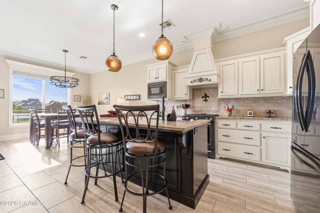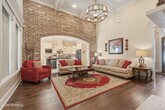 ***Lease price includes fully furnished home, utilities, and Hoa fee. All you have to do is move right in! Fully furnished open, split 2-story home with 4bd/3bth and over 2200 sqft. At the front door foyer entrance, you are met with the living area featuring coffered ceilings, gas fireplace, pond view, and brick archways leading into the kitchen. The Kitchen shares a space with a breakfast area, and is equipped with an island with dual sinks, and stainless steel appliances including a gas stove and refrigerator. Primary suite has a huge walk in closet, soaker whirlpool tub, dual sinks, and a separate custom shower. Upstairs has 1bd/1bth. Granite countertops, and laminate wood and tile flooring throughout. No carpet! Walk in utility room is at the 2 car garage entrance. The covered patio features a full kitchen and a gas fireplace, and pond view. MLS ID