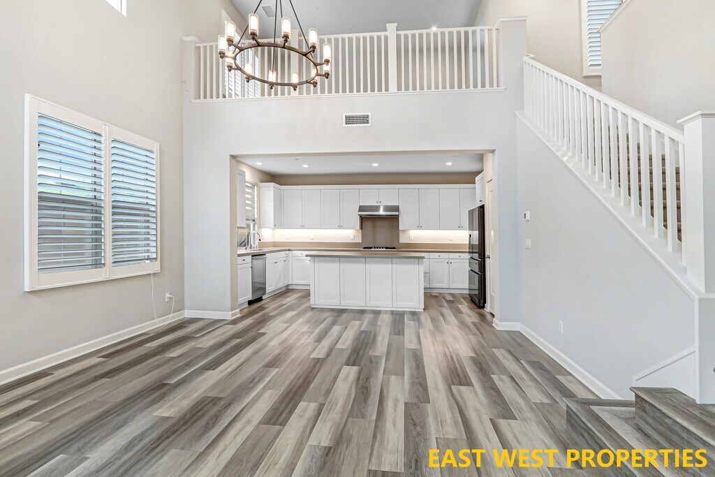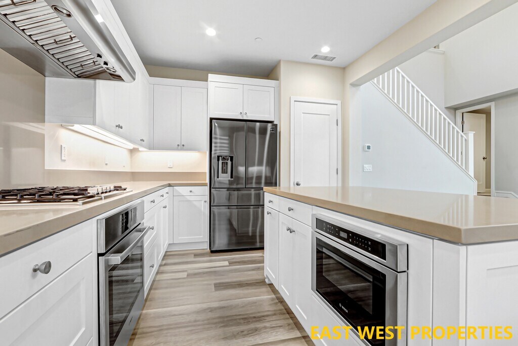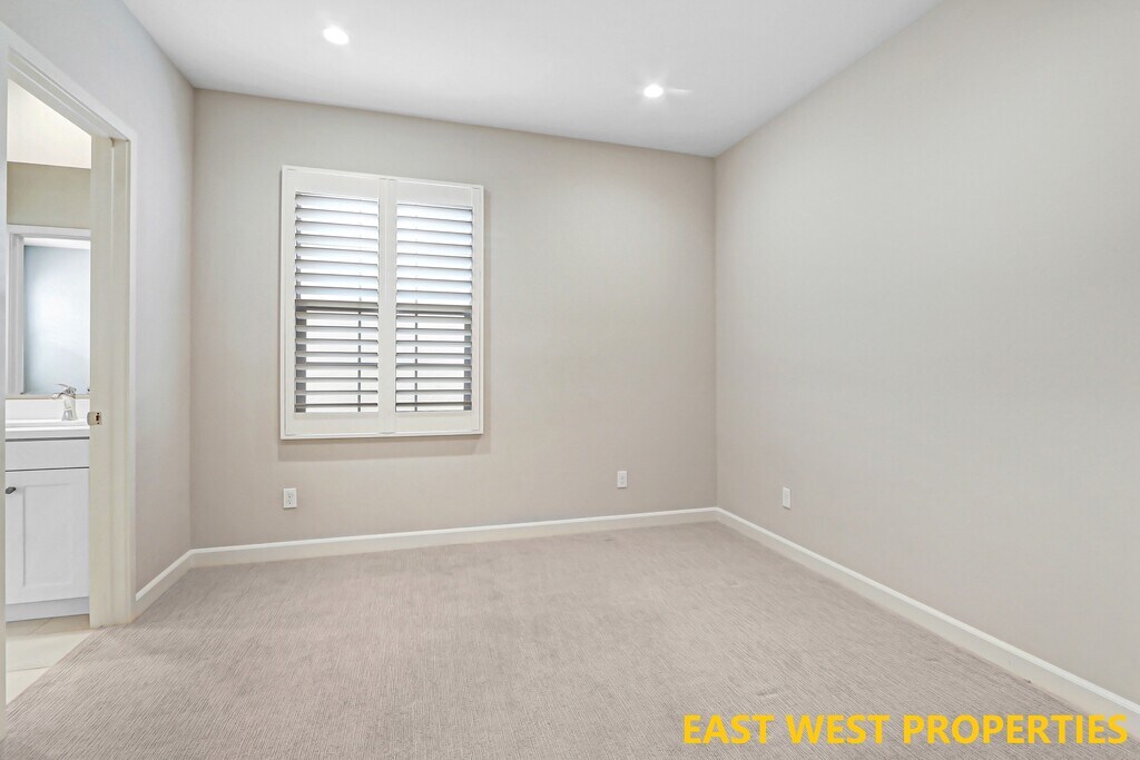 This beautiful home features breathtaking HILL VIEWS and offers 4 bedrooms, 3.5 bathrooms, plus a loft, located in the highly sought-after Portola Springs community in Irvine. Completely detached with no neighbors behind and scenic hill views from the first floor, a convenient downstairs bedroom with an en-suite bathroom. The private backyard showcases a variety of fruit trees, including loquat, lemon, lime, Fuji apple, grapevines, tomatoes, and more—perfect for those who enjoy outdoor living and gardening. Inside, the home welcomes you with a bright and open living room featuring soaring ceilings and high-set windows that fill the space with natural light. High-end Norman shutters are installed throughout, and luxury vinyl flooring adds warmth and elegance. Two folding glass doors open directly to the backyard, creating an ideal setting for relaxing or entertaining against a scenic hillside backdrop. The gourmet kitchen is equipped with quartz countertops and premium Bosch appliances. The first-floor bedroom with en-suite bathroom offers flexibility for guests or multi-generational living. Upstairs, a versatile loft provides space for a second living area, playroom, or home office. The primary suite is a private retreat featuring dual vanities, a soaking tub, a glass-enclosed shower, and a walk-in closet. Two additional bedrooms share a full bathroom with dual sinks and a separate tub/shower area. Additional highlights include direct access to a two-car garage with epoxy flooring and built-in storage cabinets and racks. Nestled in Portola Springs Village, residents enjoy resort-style amenities including 15+ parks, multiple pools, sports courts, and the 25-acre Portola Springs Community Park. Surrounded by scenic hiking and biking trails, this peaceful retreat is also minutes from shopping, dining, and entertainment. Woodbury Town Center, Orchard Hills Shopping Center, Cypress Village Shopping Center, and Irvine Spectrum Center are all nearby, with the Spectrum just 6 miles away.Zoned for top-rated Irvine schools: Loma Ridge Elementary, Jeffrey Trail Middle School, and Portola High School. Water softener, kitchen water filter, EV charger, refrigerator, washer, and dryer are all included.