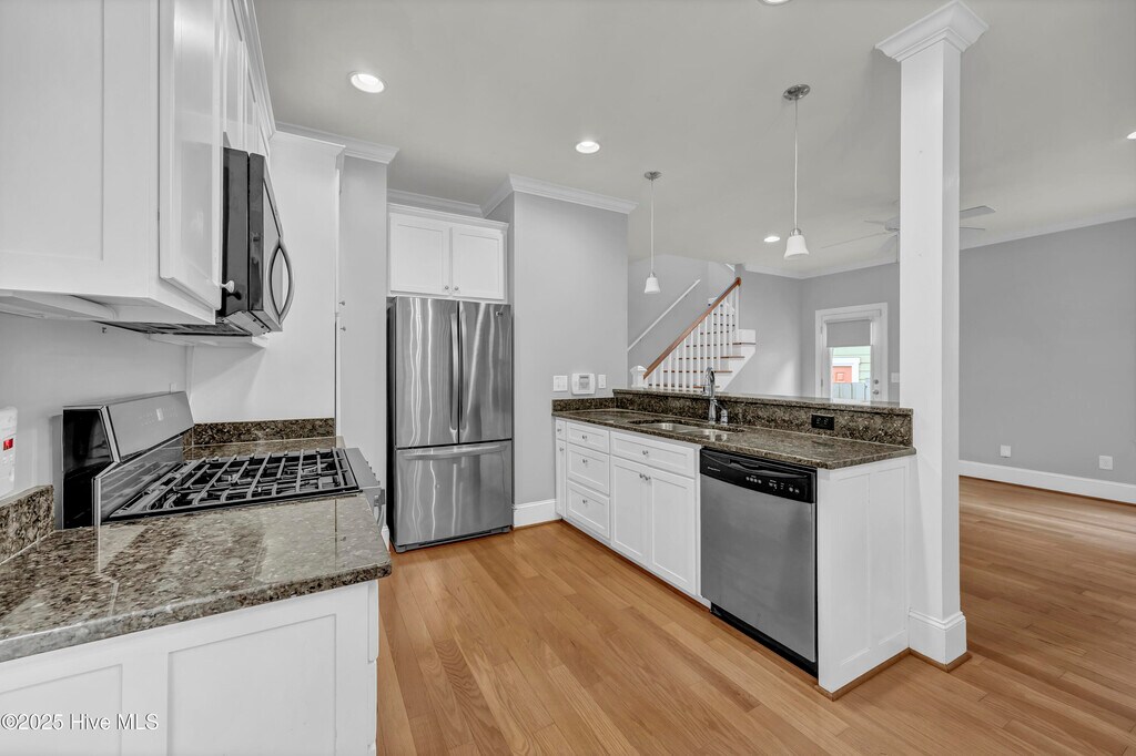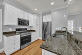 Reduced Rental Rate! Charming 2-bedroom, 2 bath unfurnished home offers many desirable qualities in addition to its downtown location. From the inviting covered rocking chair front porch with landscaped yard, brick and concrete walkway to the enclosed back patio and backyard with privacy fence, the outdoor charm is only part of the draw to this house. It's indoor roominess, beautiful wood floors & LVP (no carpet), and great floorplan are sure to please. Come see the spacious kitchen that is open to the living room with breakfast bar, stainless steel appliance, granite countertops, gas stove and a connecting dining area. Downstairs you will also find the second bedroom with views of the back yard and a full hall bathroom. The laundry room equipped with washer and dryer, additional storage & master bedroom with his/her closets is located upstairs with ensuite bathroom. This is a must-see house. No smoking in house or on premises. 2 off street parking spots included. Dogs are negotiable on a case-by-case basis and non-refundable pet fee. No cats! Pest control included. Available 09/15/2025.