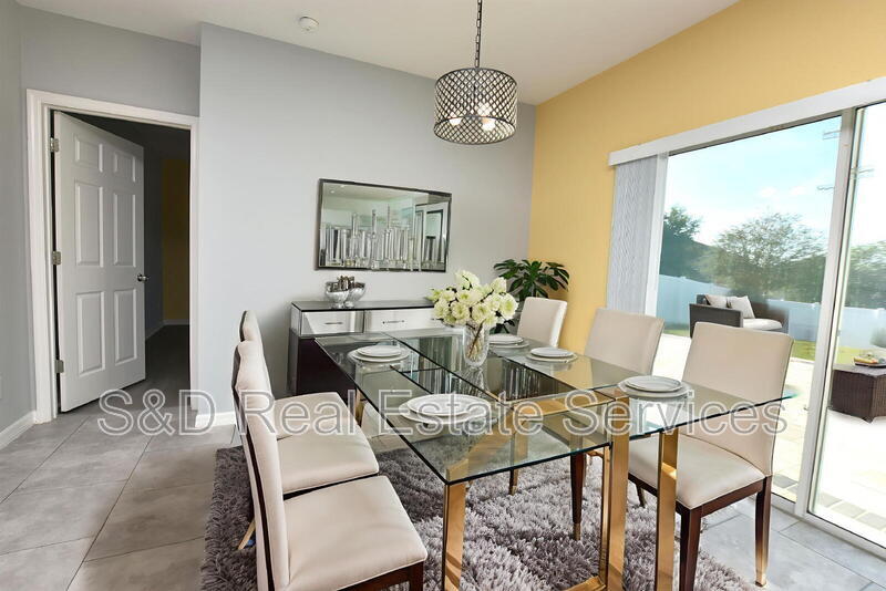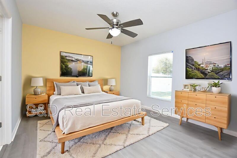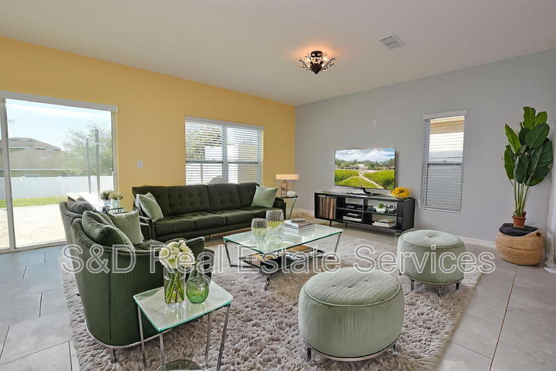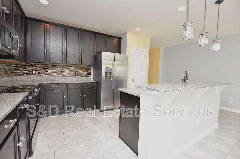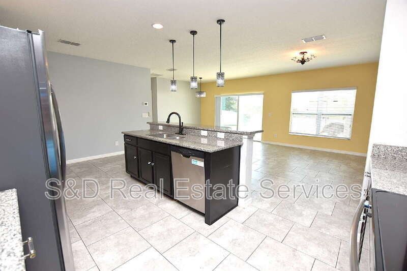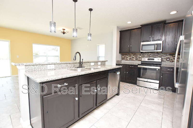 One or more photo(s) has been virtually staged. Check out this immaculate 4-bedroom, 2-bath home featuring an open floor plan and modern layout. The spacious kitchen offers granite countertops, stainless steel appliances, and a convenient closet pantry. It flows seamlessly into the great room and dining room combo, creating the perfect space for gatherings. This split-bedroom design includes a large master suite with an ensuite bath featuring a dual-sink vanity, step-in shower, separate tub, and an oversized walk-in closet with plenty of shelving for storage. The guest bedrooms are generously sized, and the home also includes an inside laundry room with a washer and dryer. A 2-car garage with an electric opener adds convenience, while the fenced backyard truly shines with a large patio area ideal for entertaining and a built-in fire pit. Located just minutes from I-4 and only 30 minutes from Magic Kingdom, this home offers comfort, style, and an unbeatable location. Administration Fee: Upon approval tenants will be subject to a $250 one-time administration fee.