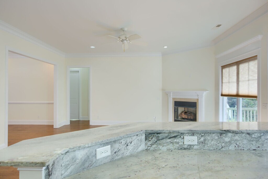Beautifully updated custom brick home in the desirable North Shore Country Club! This home features fresh new paint throughout and brand-new carpet in all bedrooms and the FROG, creating a bright, move-in-ready feel. The standout kitchen offers granite eat-at countertops, shaker-style cabinetry, recessed lighting, a pantry, and stainless steel appliances, including a side-by-side French door refrigerator. Engineered hardwood floors flow through the living, dining, and kitchen areas, anchored by a 42" corner gas-log fireplace with marble surround. Enjoy 10' smooth ceilings and 8' interior and exterior doors throughout the first floor, adding to the home’s open and upscale feel. The spacious primary suite features a tray ceiling with double crown molding, recessed lighting, and a wall of windows overlooking the wooded lot. The spa-inspired bath includes dual granite vanities, a soaking tub, walk-in closet, and an oversized custom-tiled shower with rain shower head and body sprays. A 336 SF FROG offers new carpet, 9' ceilings, and separate temperature control—perfect for a home office, guest space, or bonus room. Additional highlights include a split bedroom floorplan and a large deck with built-in seating and storage. Minutes from North Topsail Beach and Camp Lejeune—this one checks all the boxes. Schedule your showing today!