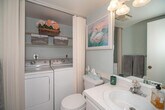 This 2-bed, 2.5-bath townhome in Tropic Villas North is available for an annual 12-month lease. The interior features luxury vinyl flooring throughout, an open main living area, and an in-unit washer and dryer for added convenience. Ample closet space, including a walk-in closet in the master bedroom. Each bedroom includes its own private balcony, while the fenced-in patio provides a great outdoor space for relaxing or entertaining. Residents can also enjoy the community pool just steps away. Centrally located, this townhome is just a short distance from downtown Vero Beach, local shops & restaurants, and the sandy beaches of the Treasure Coast. Perfect for anyone looking to enjoy easy, maintenance-free living all year long.