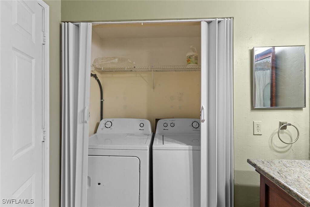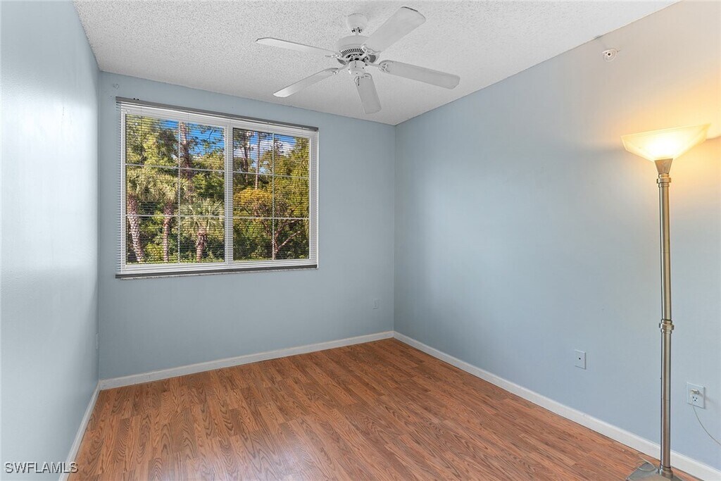 Bedroom/1 Bath Screened balcony. Features: currently Washer and Dryer,fans overhead,full closet pantry area,blinds,microwave,dishwasher...lots of great extras for a annual. Cabinets in kitchen are a light wood grain bar with pendant lighting. Walk in closet in the Master Bedroom. Wood laminate flooring in bedrooms. Bathroom has a large tub shower combination and free standing wood cabinetry for bath sink and shelving. The Reserve at Naples Condominiums has many amenities...peaceful pool and spa with grilling area and very pleasant seating at pond over look adjacent to the pool. There is tennis,fitness center,fenced playground too. One designated parking spots and Owner pays trash,water,and exterior pest control. What a great deal in Naples convenient to Hwy 75 and all central Naples shopping,dining,and beaches. Come enjoy this truly lovely sequestered spot right in Naples. You will love this community.