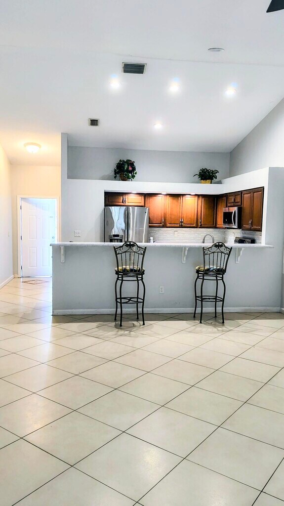 Conveniently located villa. Walking distance to Publix's plaza. Unit features renovated kitchen and bathrooms. SS appliances,tile floor throughout. L shaped enclosed backyard. Freshly painted in & out. Brand new AC. Vaulted ceiling in dining/living room. Plenty of storage. Open and airy with a lot of natural light. In addition to the garage,the driveway is long enough to fit 2 cars. Quiet residential neighborhood. No Hoa. 1 pet allowed. MLS ID B26008690