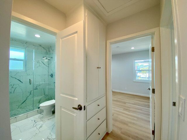 Beautifully renovated, spacious 2nd floor unit in Brentwood's most desirable location! Gorgeous 2BR/2BA fitted w/ upgraded finishes throughout. The kitchen has ALL New Quartz Countertops, Single Deep-Bowl Kitchen Sink, New Appliances: Gas Stove, Microwave, Refrigerator, Dishwasher, Garbage Disposal & a handy back door for easy access to parking. The bathroom has Custom Soft-close Cabinets, Quartz Countertops & Polished Chrome Rain Showerheads. New A/C & Heating Units, Freshly Painted Interiors, Luxury Plank Flooring. The first building below San Vicente at the corner of Barrington Ave & Dorothy St - Across the street from Malou Coffee and Sor Tino Restaurant & 1 block from Starbucks, Wholefoods, Brentwood Gardens, & another 20+ restaurants, shops, banks & services in the epicenter of Brentwood's Golden Triangle! Short walk to Shops & Restaurants. 1 min walk to bus stop (Big Blue Bus 3 & 4 Routes) that takes you to UCLA & Little Osake. 1 Parking Spot available for $100 per month. Pets upon approval w/ deposit.