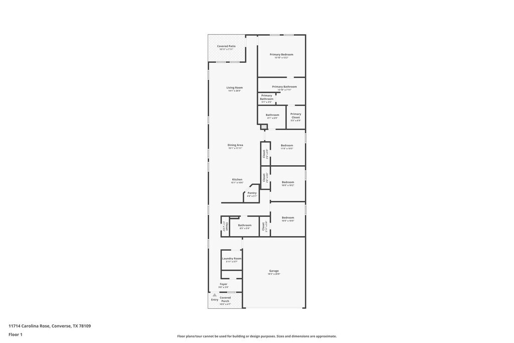 Welcome to 11714 Carolina Rose, a brand new home nestled in the heart of Converse, TX. This stunning property boasts an open floor plan, perfect for those who love a spacious and airy living environment. With four bedrooms and three baths this home offers ample space for comfort and convenience. Two of the bedrooms even come with their own private baths, adding an extra touch of luxury. The bedrooms are carpeted, providing a cozy and warm atmosphere. Step outside and you'll find a covered patio, an ideal spot for outdoor relaxation or entertaining. Plus, high-speed internet is provided, ensuring you stay connected at all times. Experience the perfect blend of comfort, style, and modern living at 11714 Carolina Rose.
